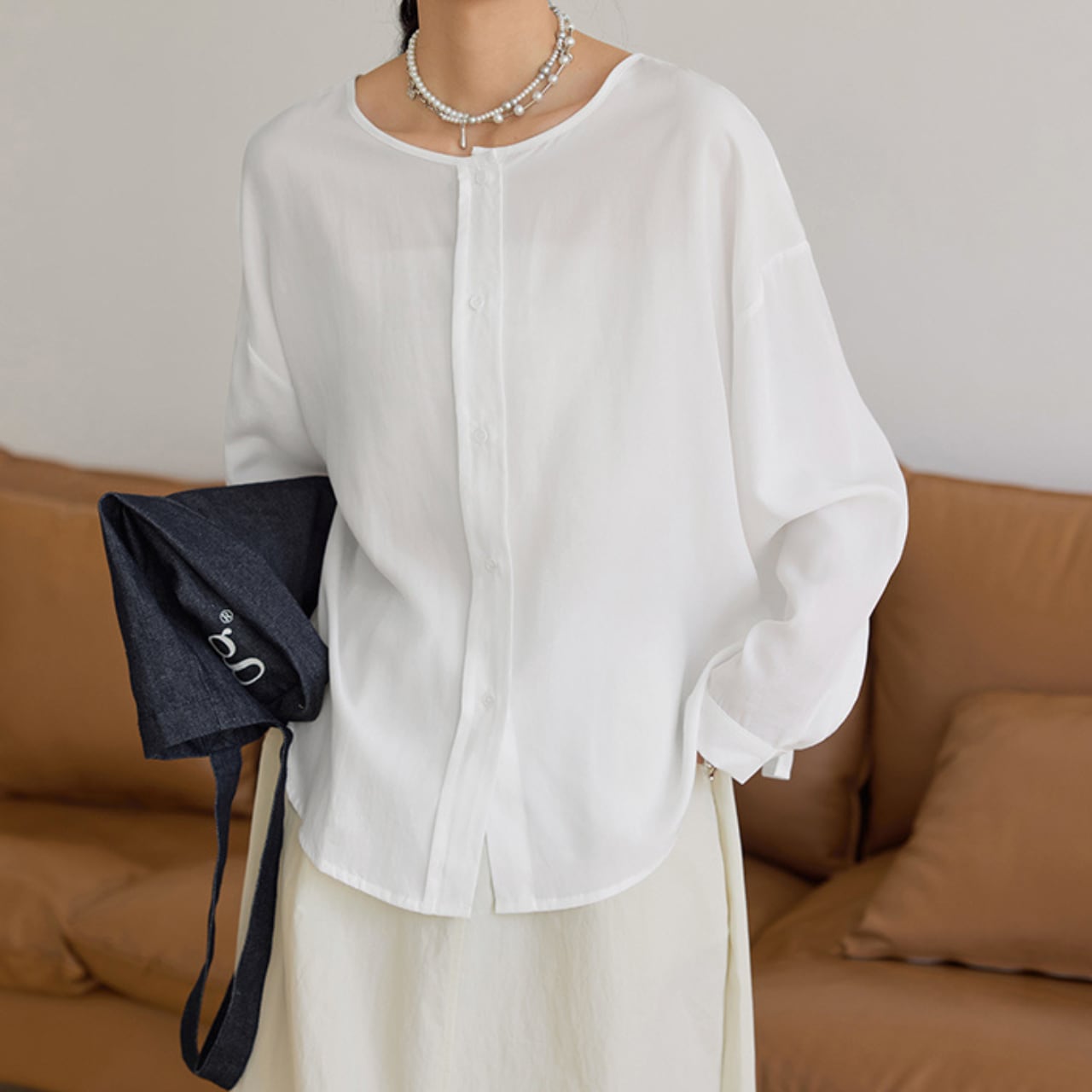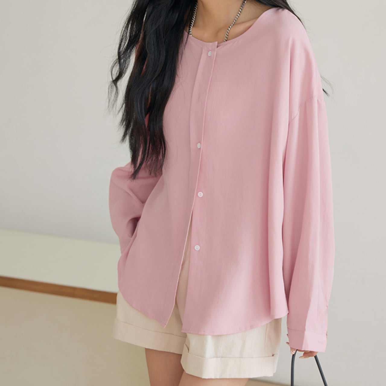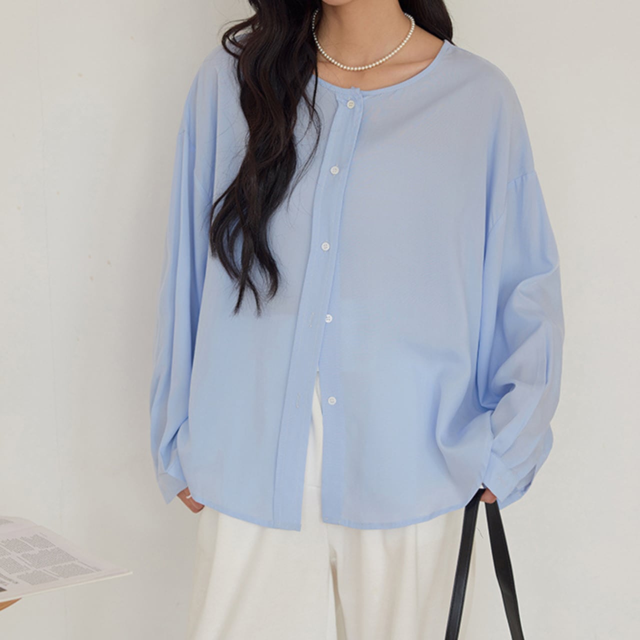 ノーカラーフロントボタンシアーブラウス(4color) BL3206