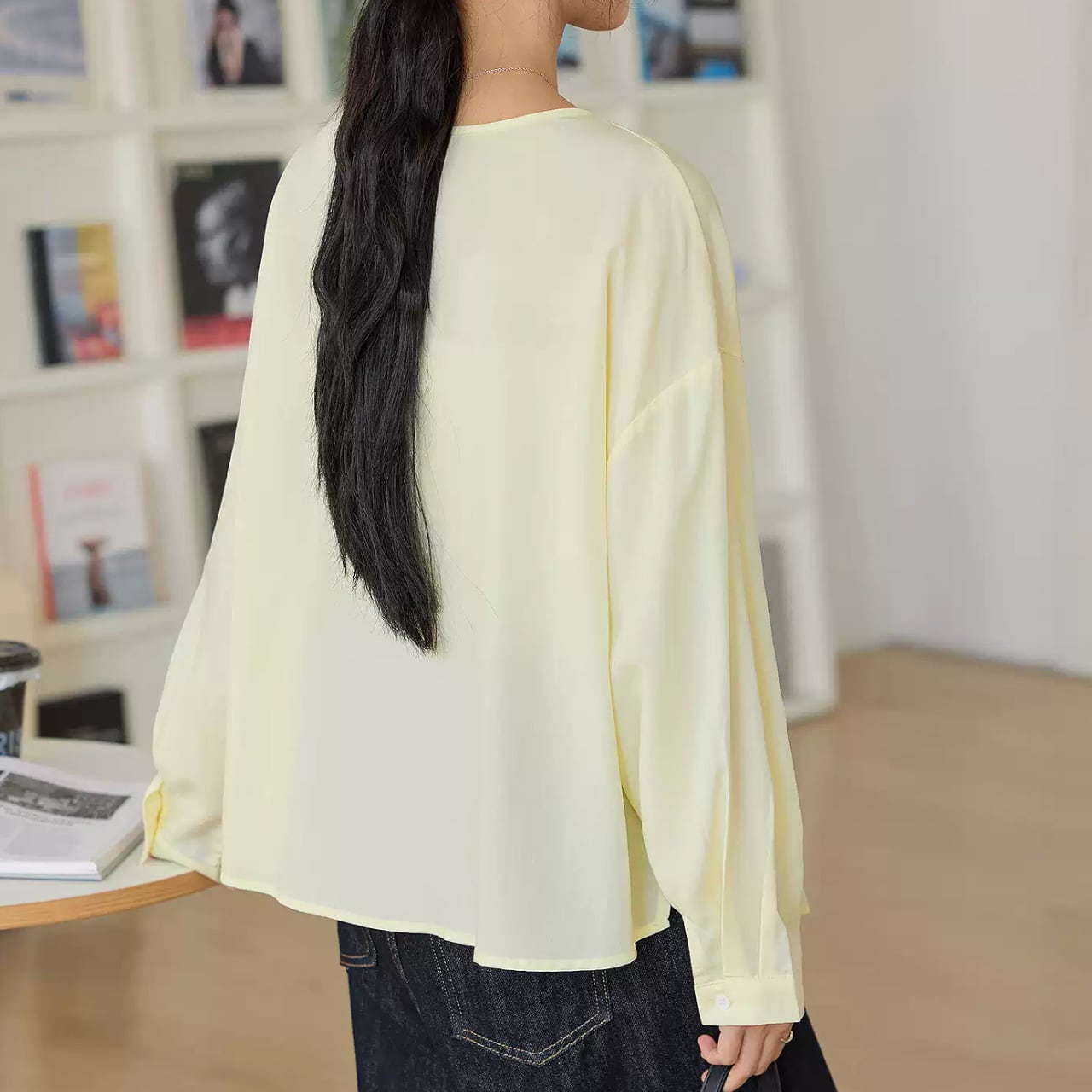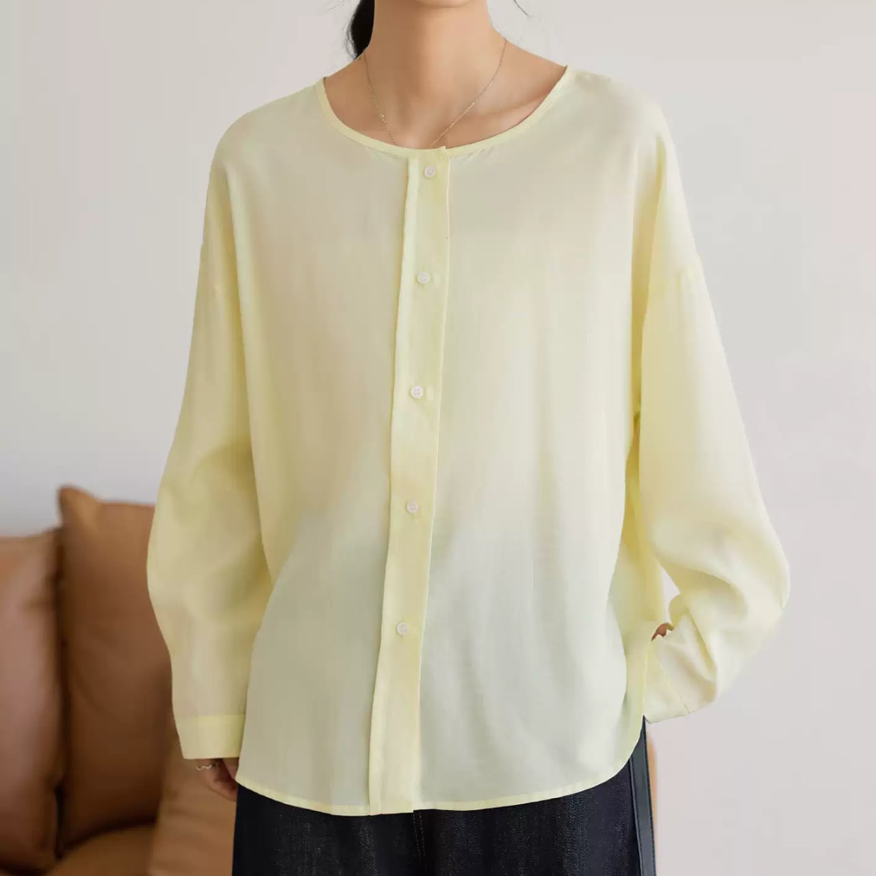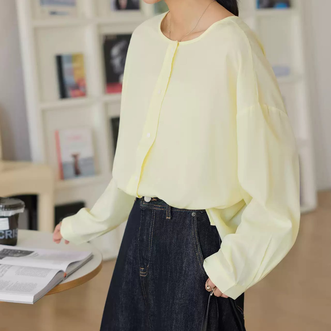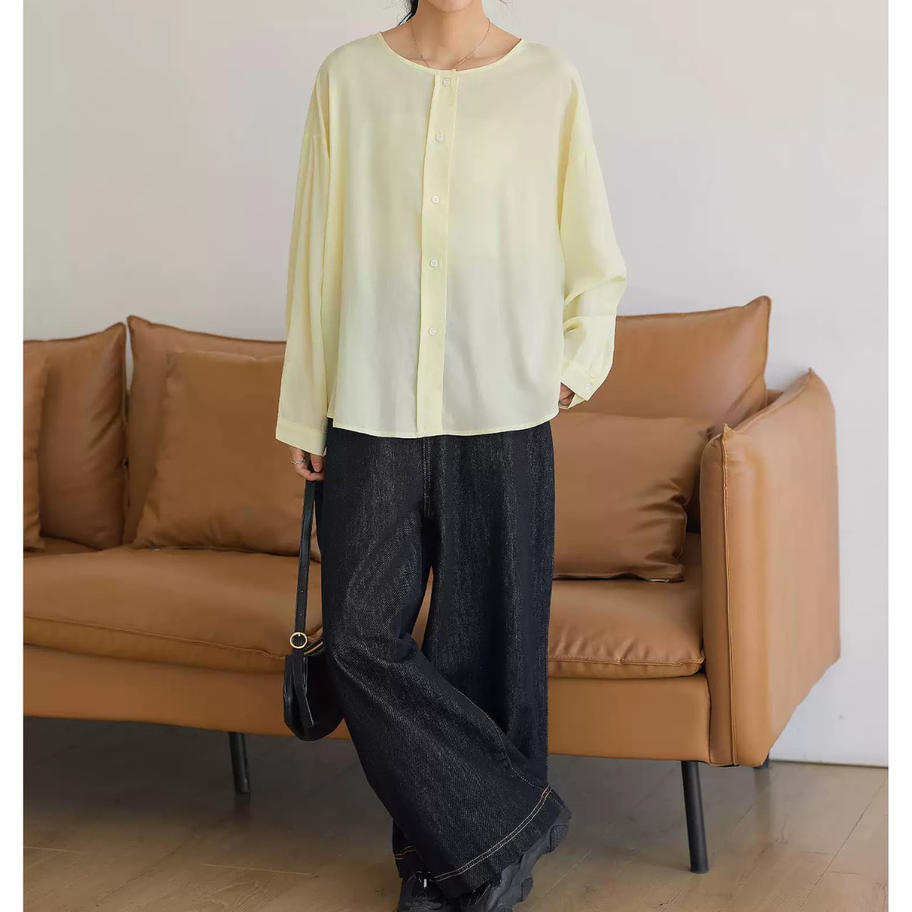 ノーカラーフロントボタンシアーブラウス(4color) BL3206