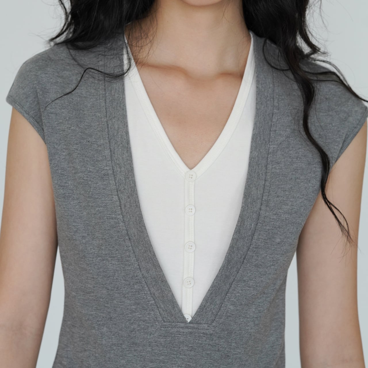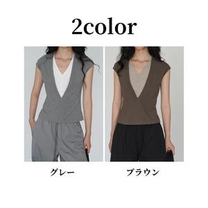 フェイクレイヤードフレンチスリーブカットソー(2color) CS3306