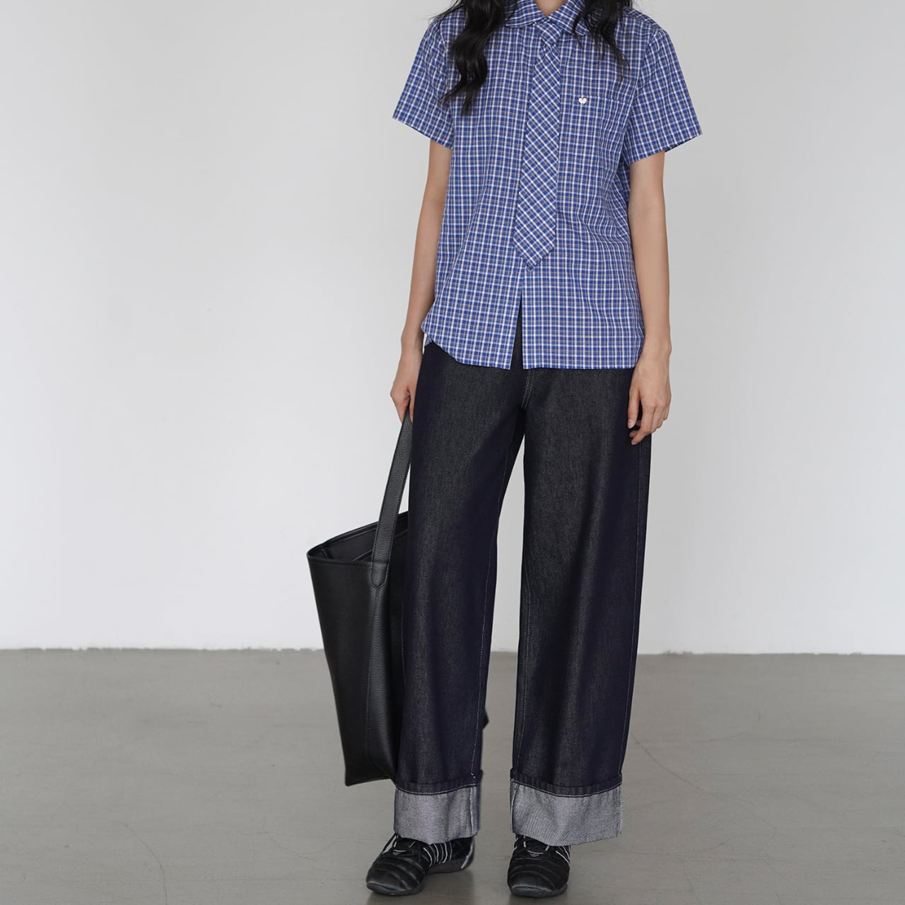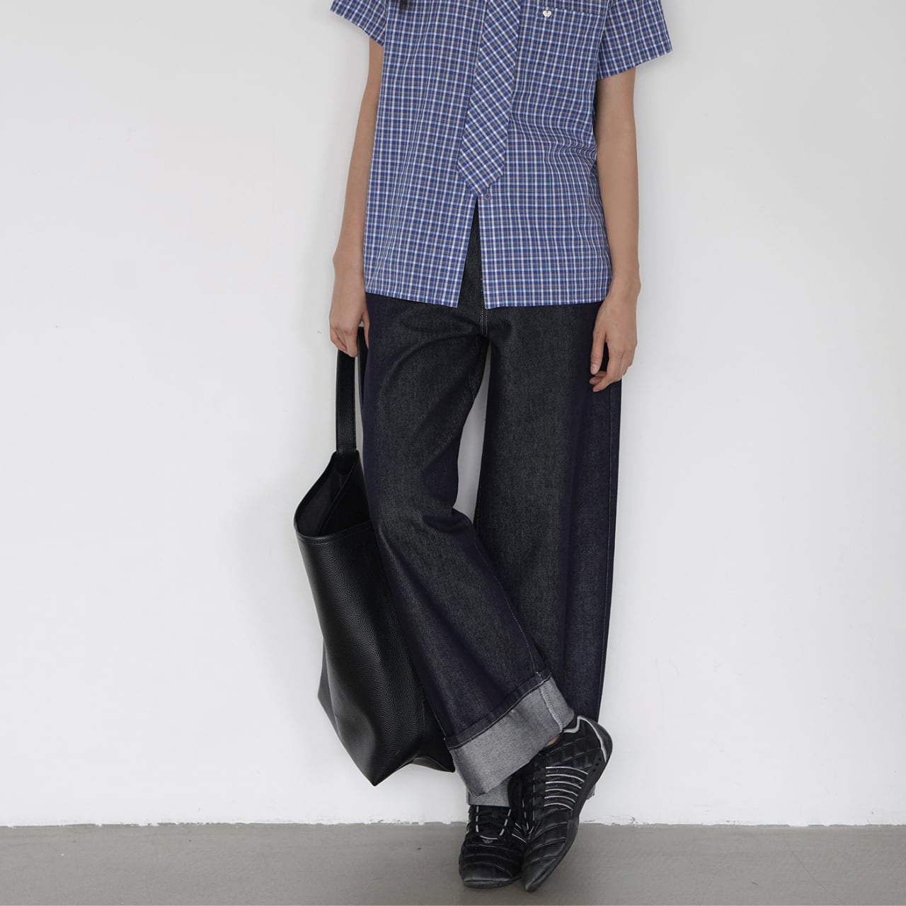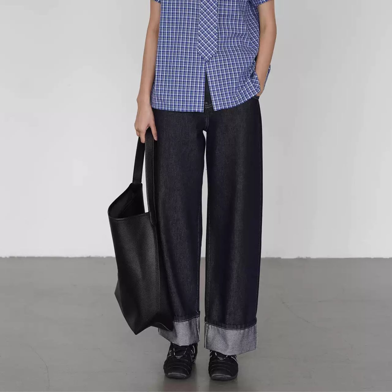 旬の着こなしが叶う、ロールアップデザインのワイドデニムパンツ。