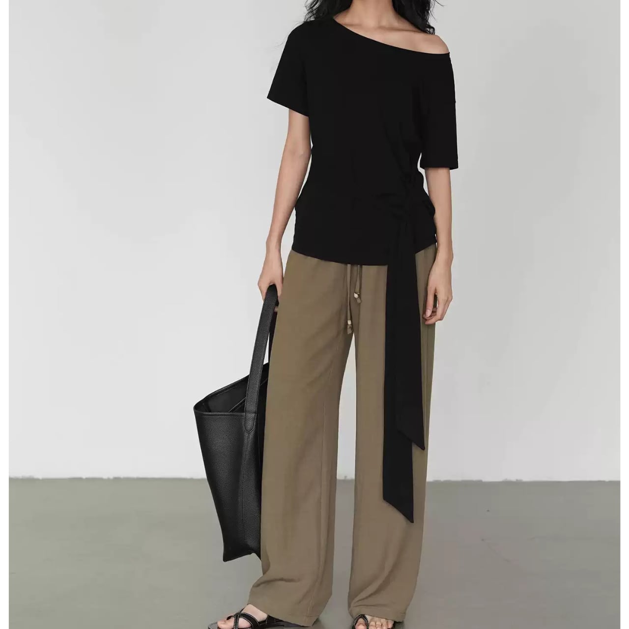 ドローストリングワイドパンツ。