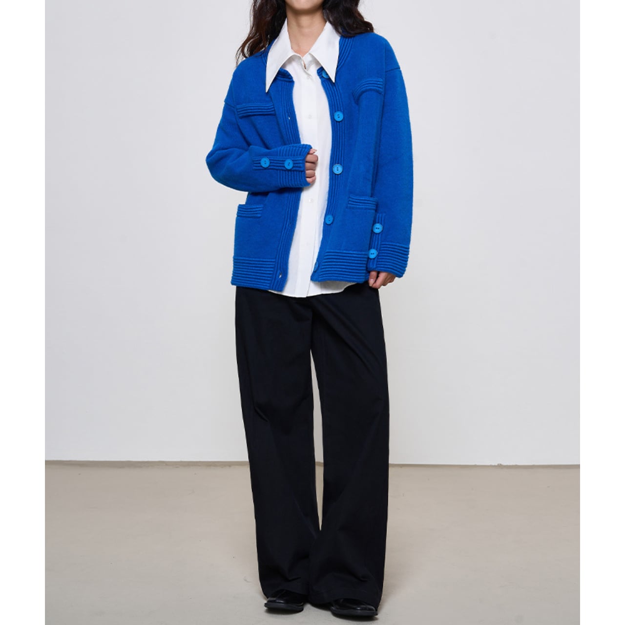 ビッグボタンシングルブレストニットカーディガン CD3437