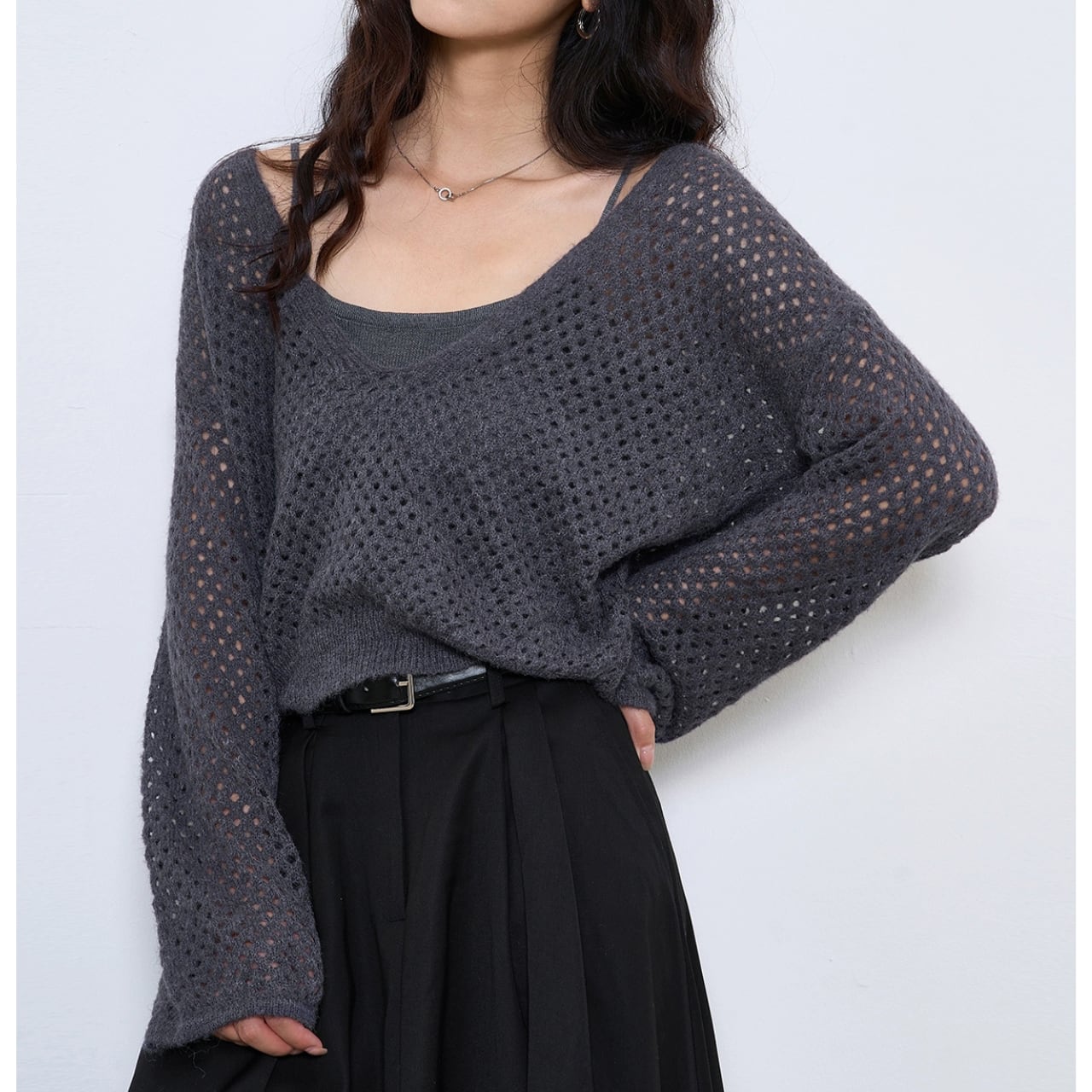 ざっくりとしたメッシュ編みが軽やかな透け感を生み出し、