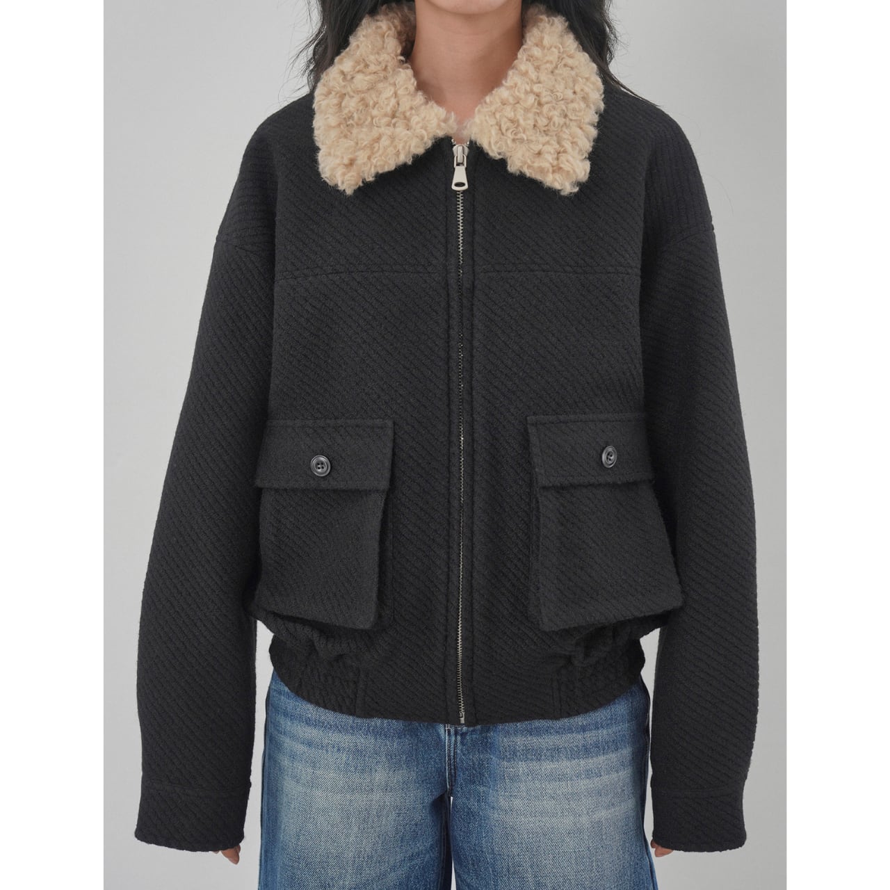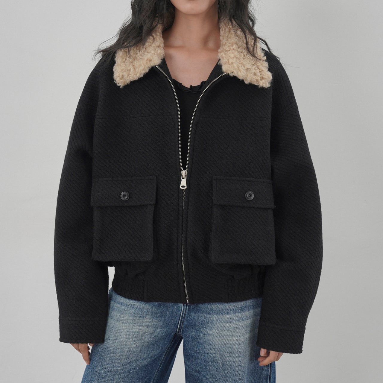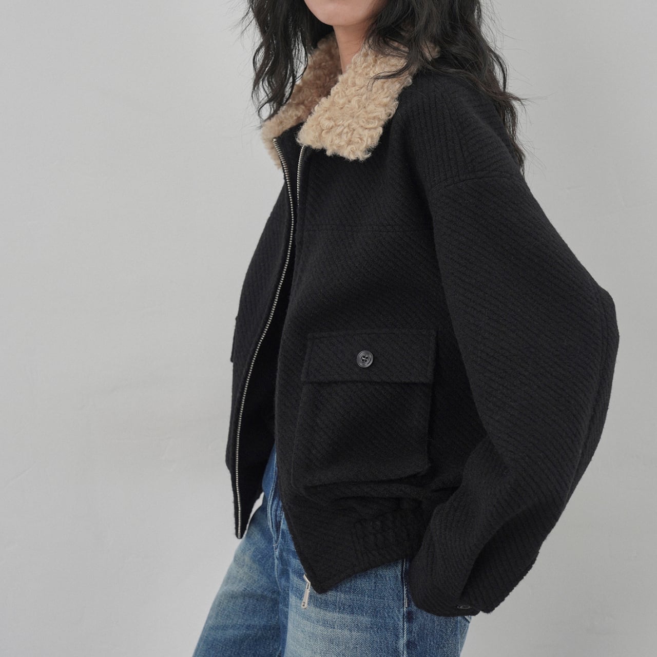 暖かみのあるモコモコとしたボア襟が、顔周りを華やかに、