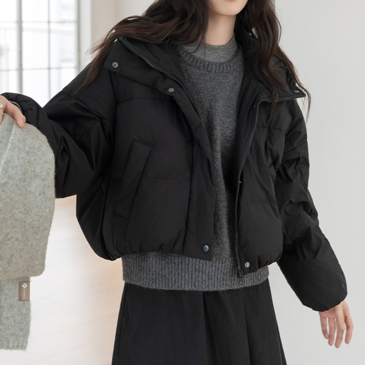 顔周りを華奢に見せ、防寒性も抜群です。