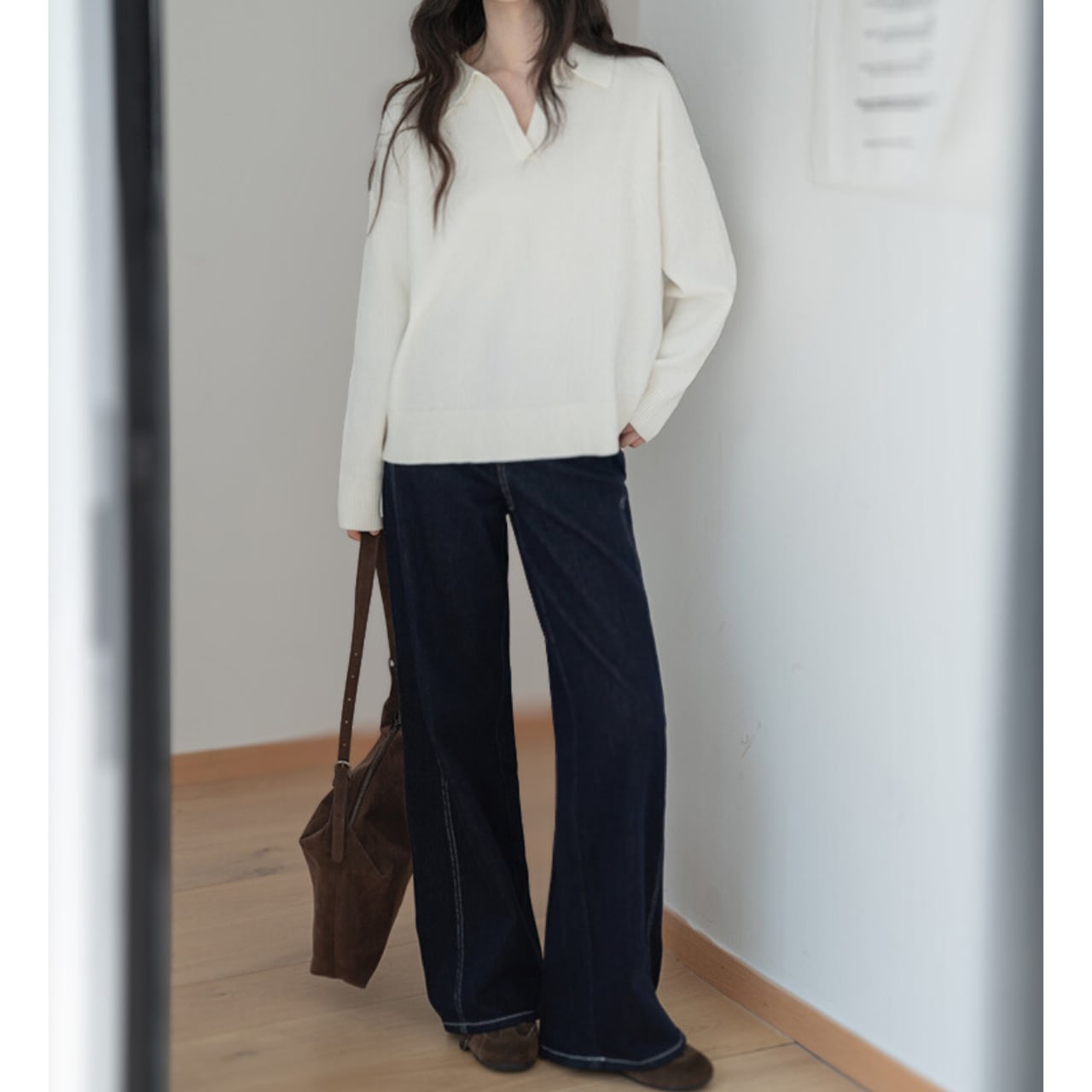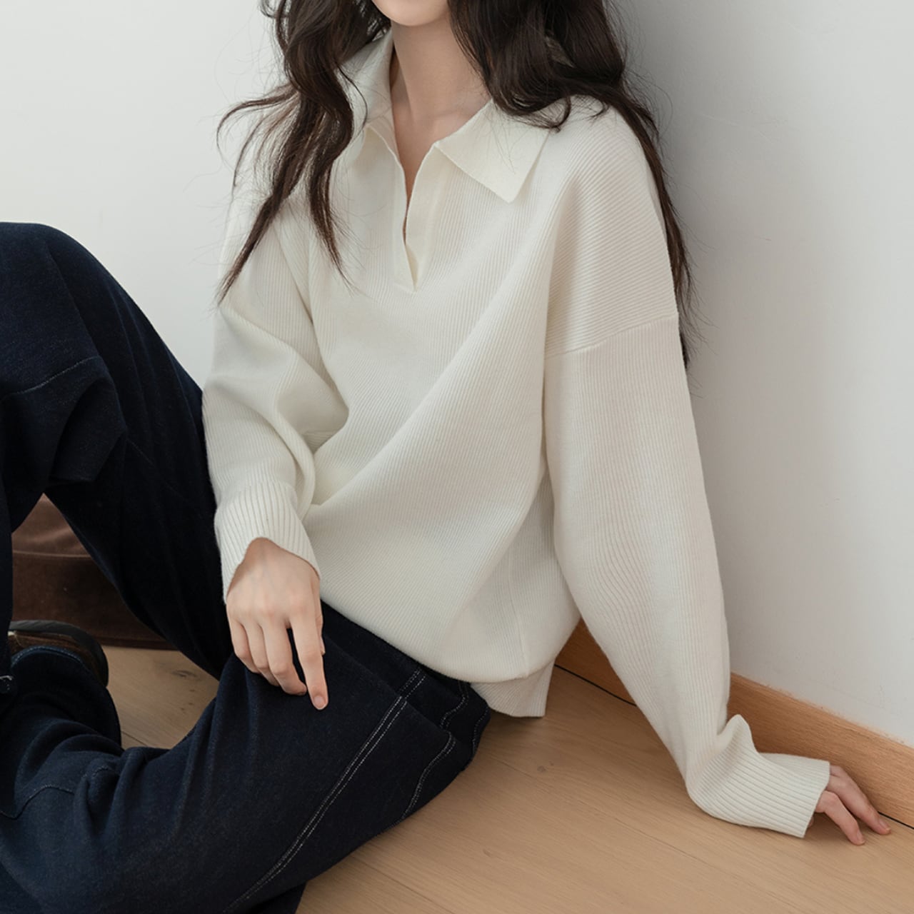 トレンドのポロカラーデザインを取り入れたニットトップス。