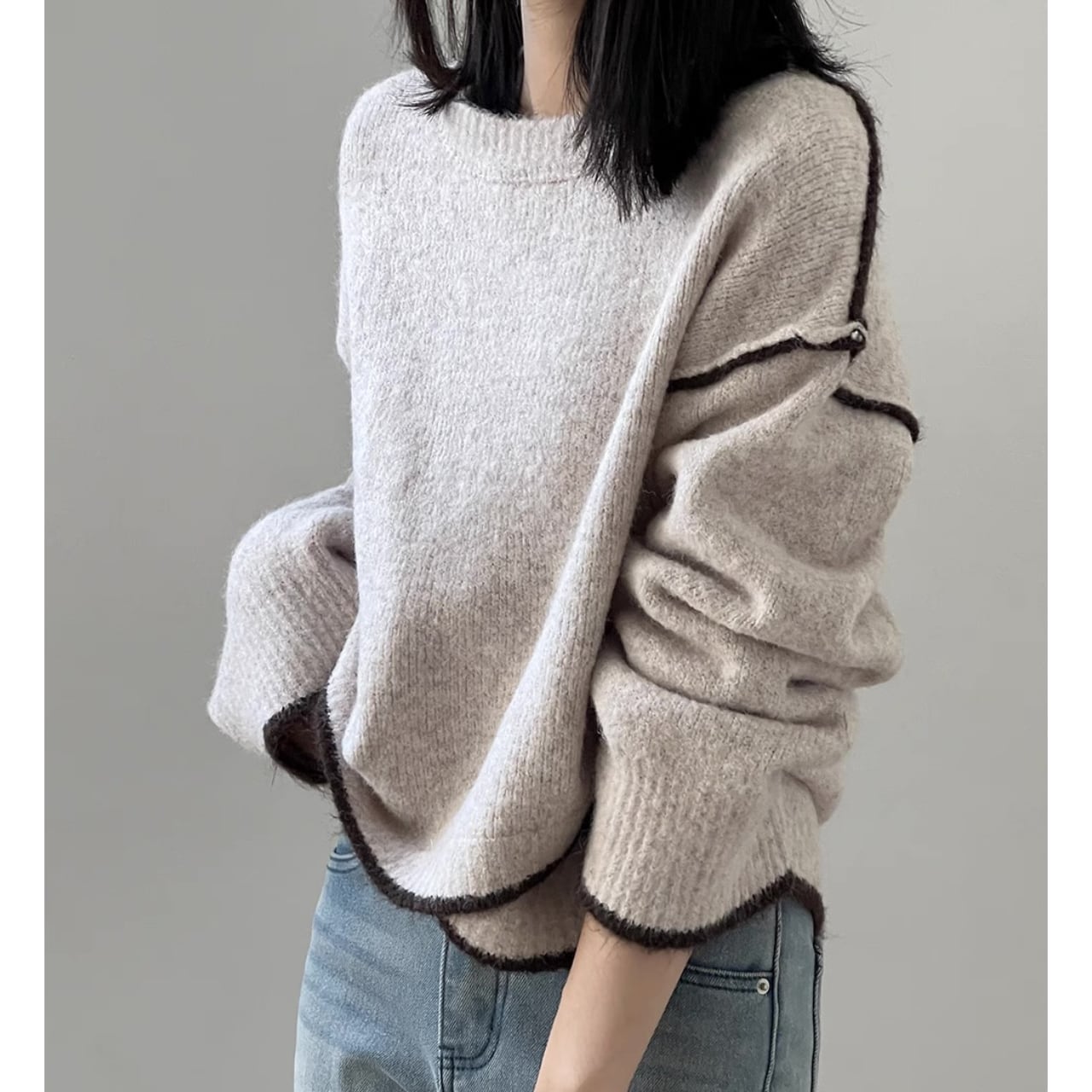 アウトシームデザインアシンメトリーニット(3color) KT3520