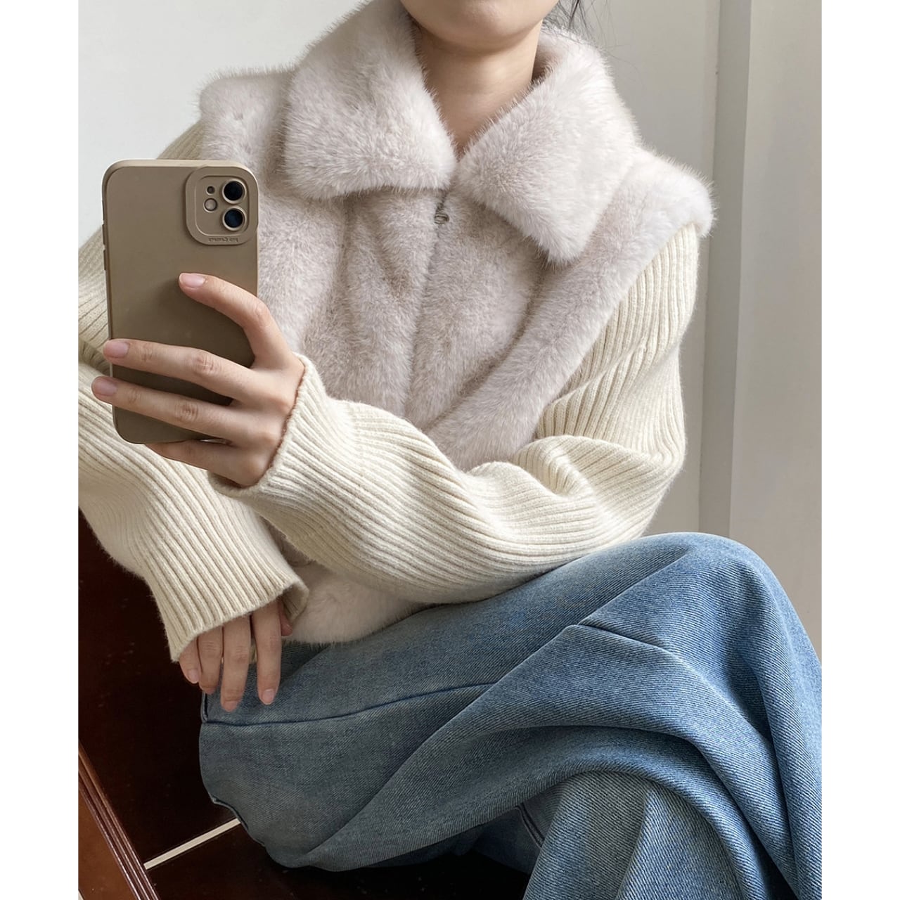 リブスリーブファーベストレイヤードライクジャケット(2color) JK3524