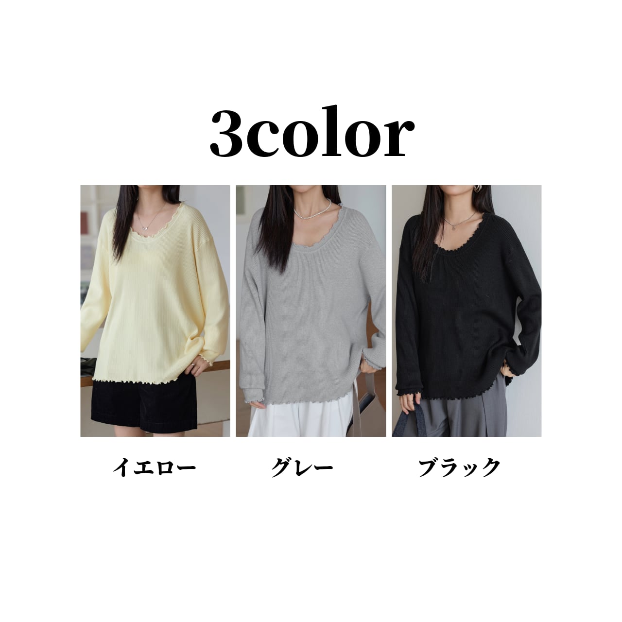 メロウフリルVネックオーバーサイズニット(3color) KT3525