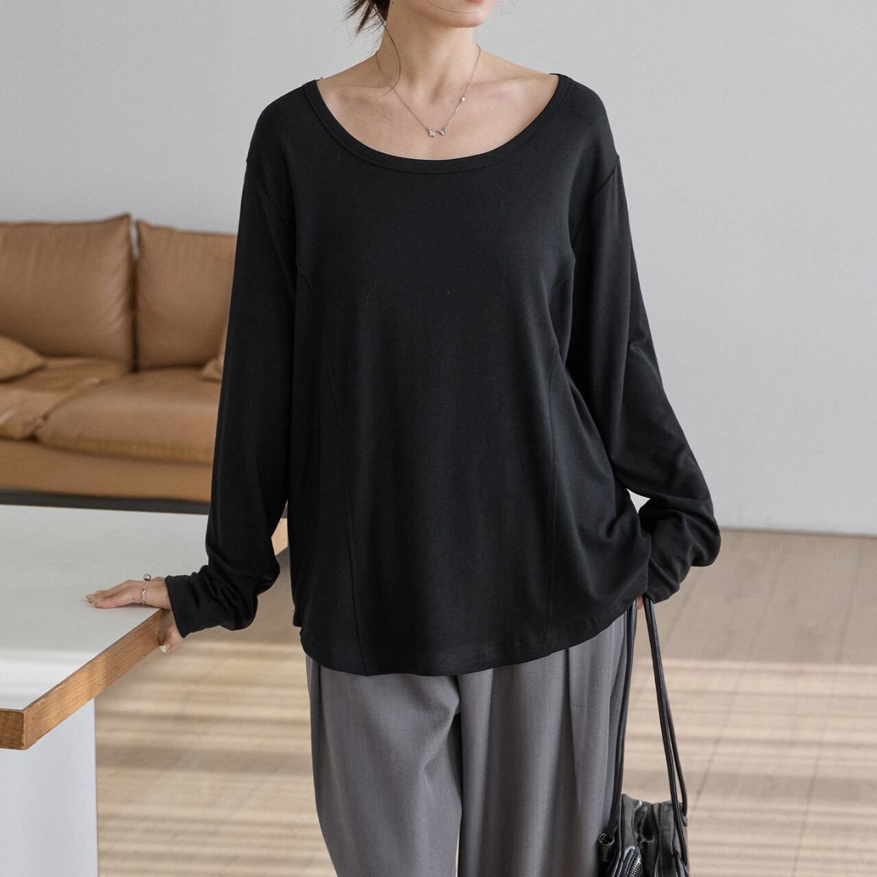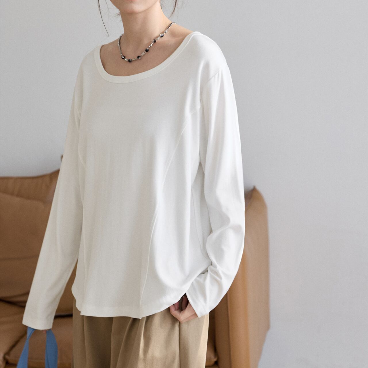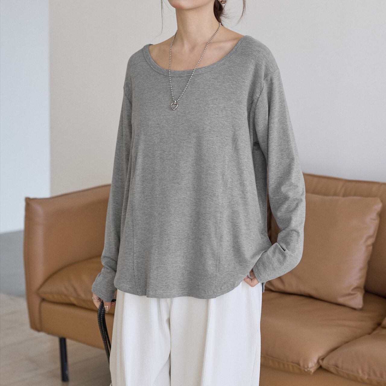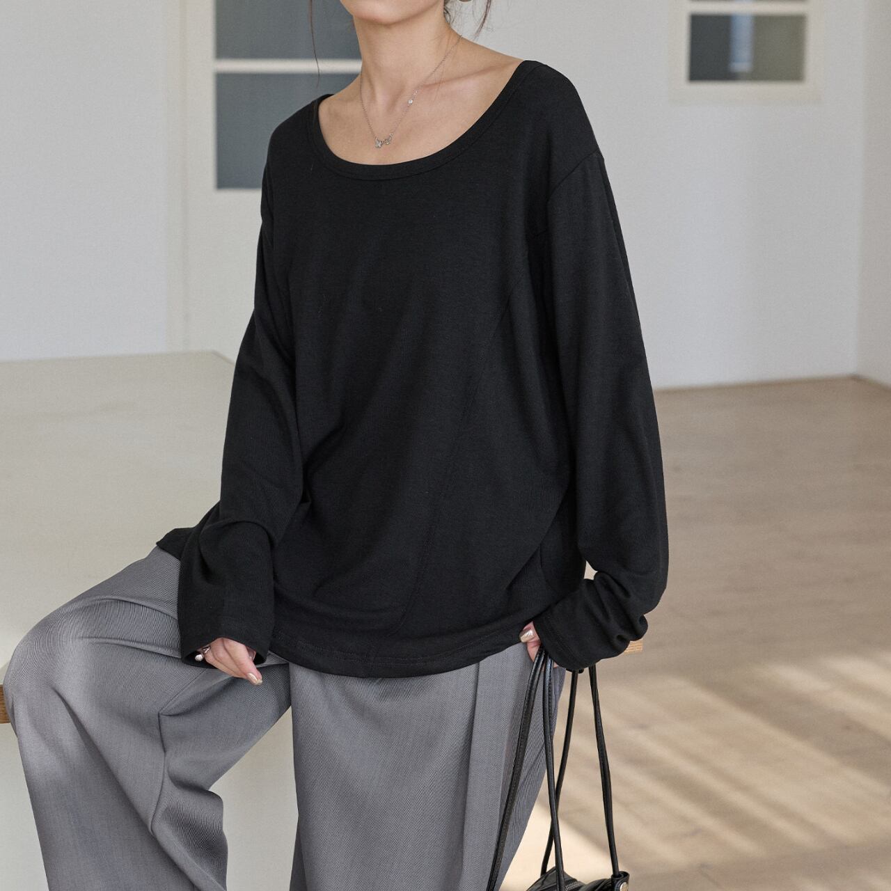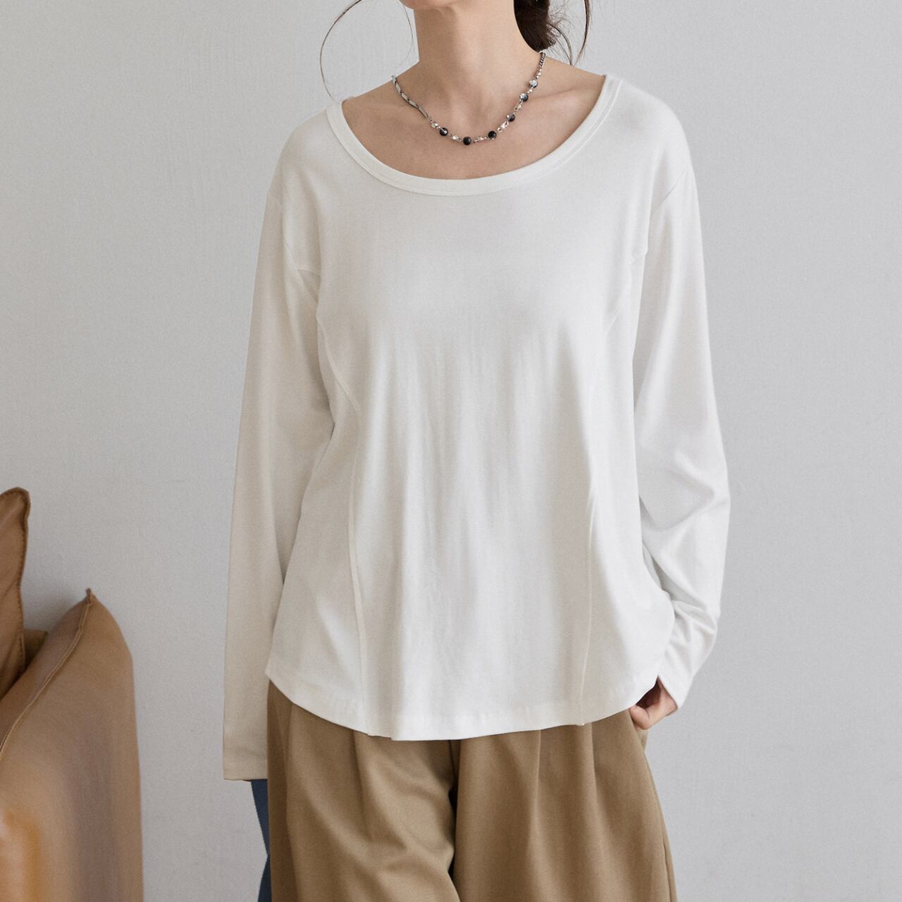 センターシームUネックロングスリーブTシャツ(3color) 3561