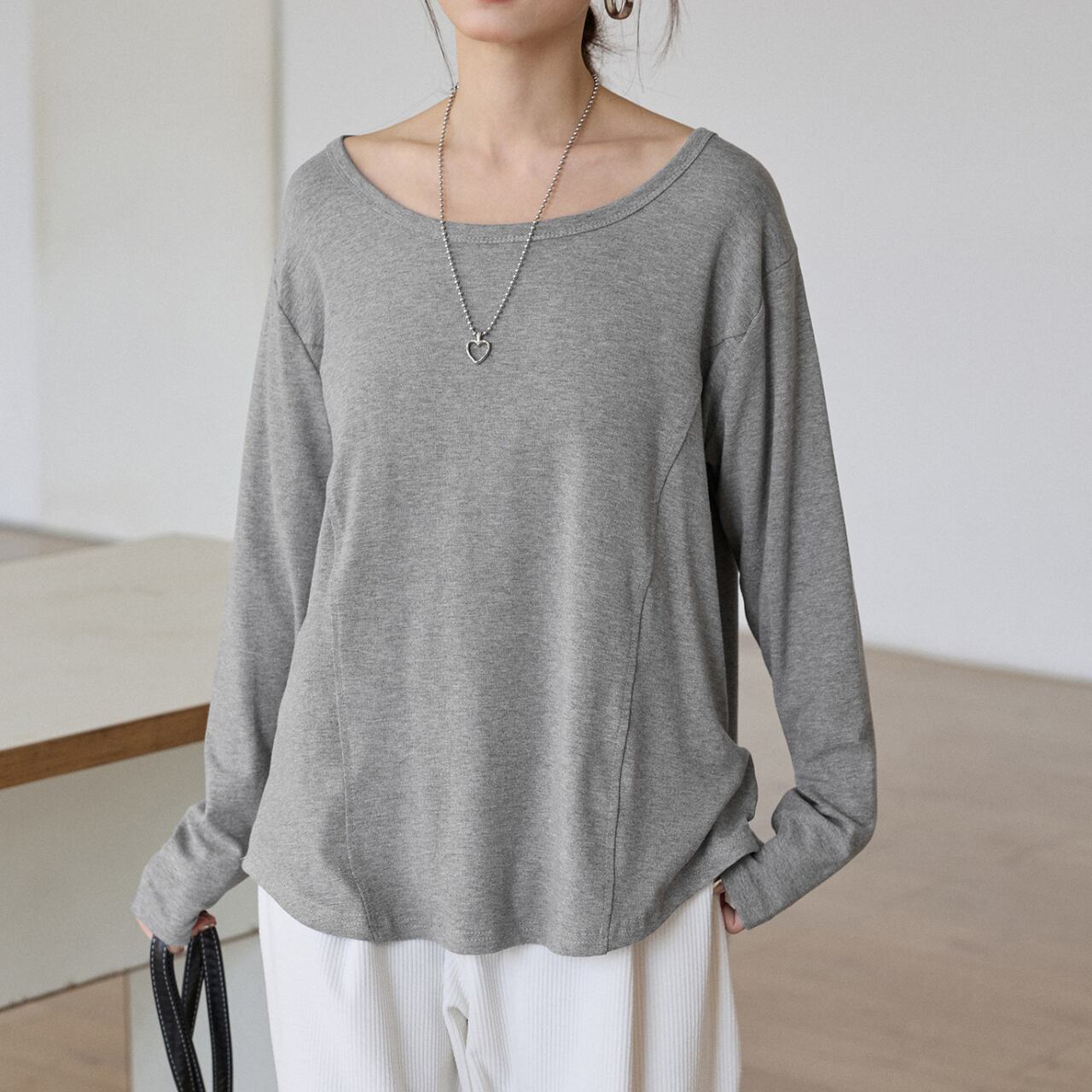 鎖骨ラインを美しく華奢に見せてくれる大人のカットソー。