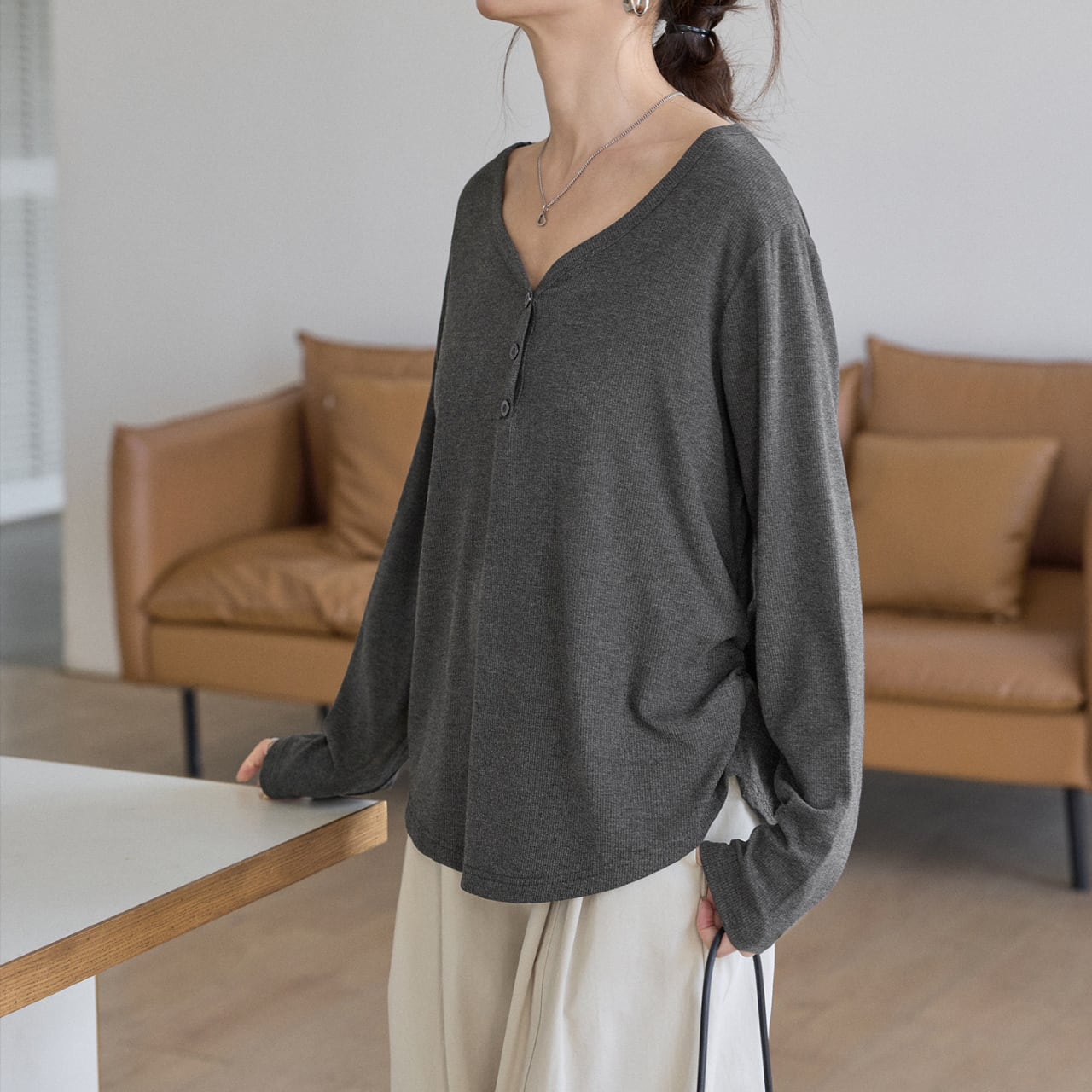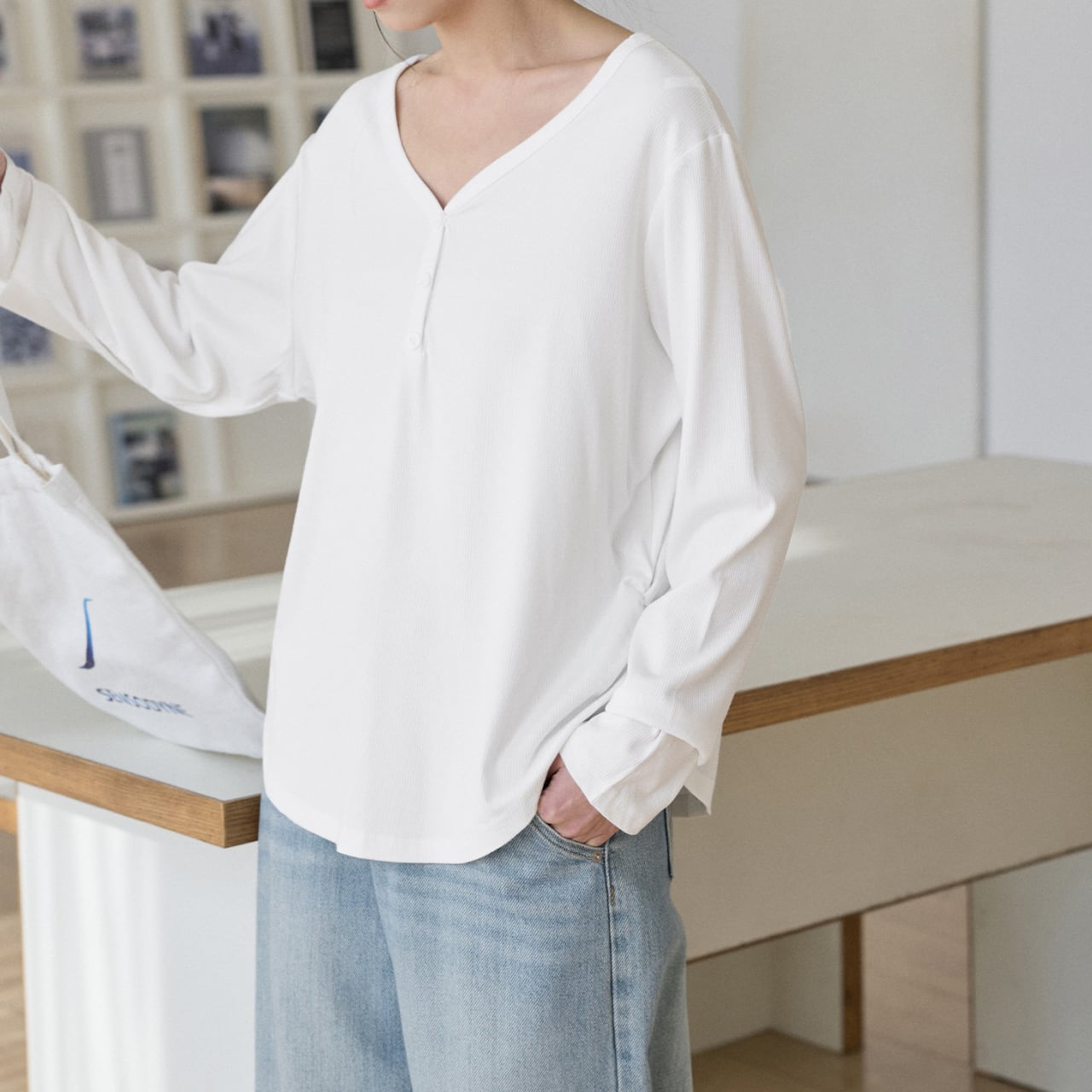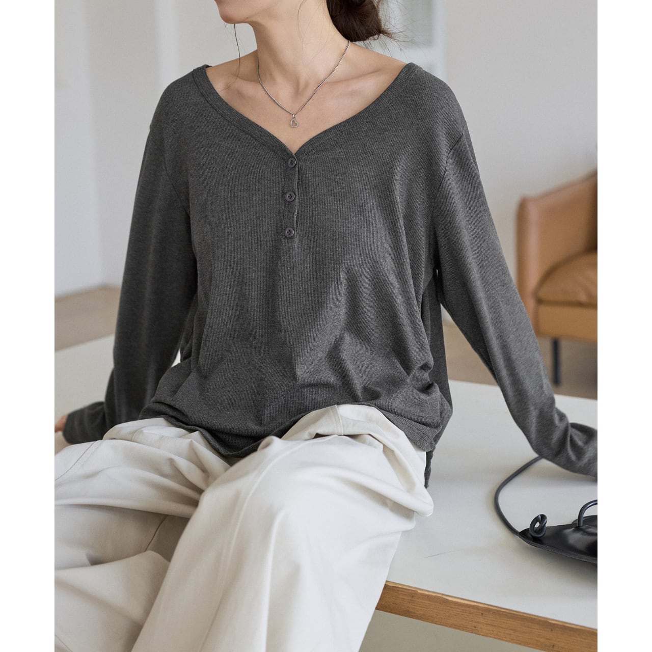 Vネックヘンリーボタンリラックスカットソー(3color) 3571