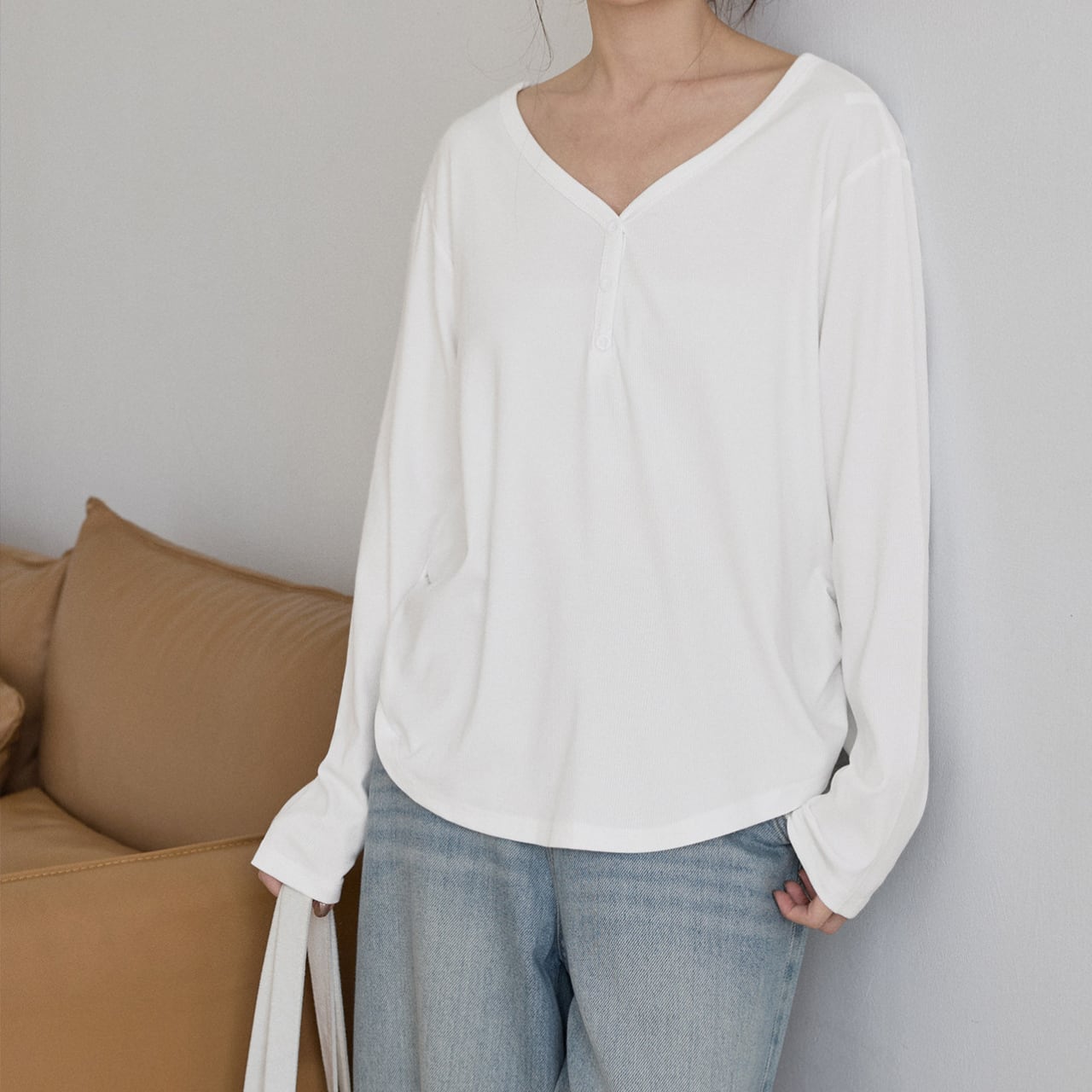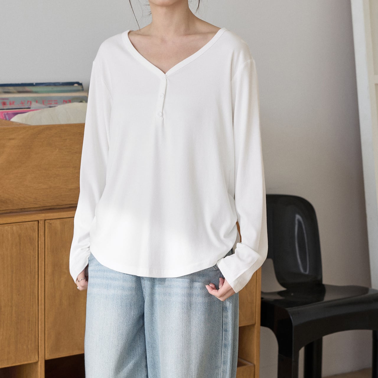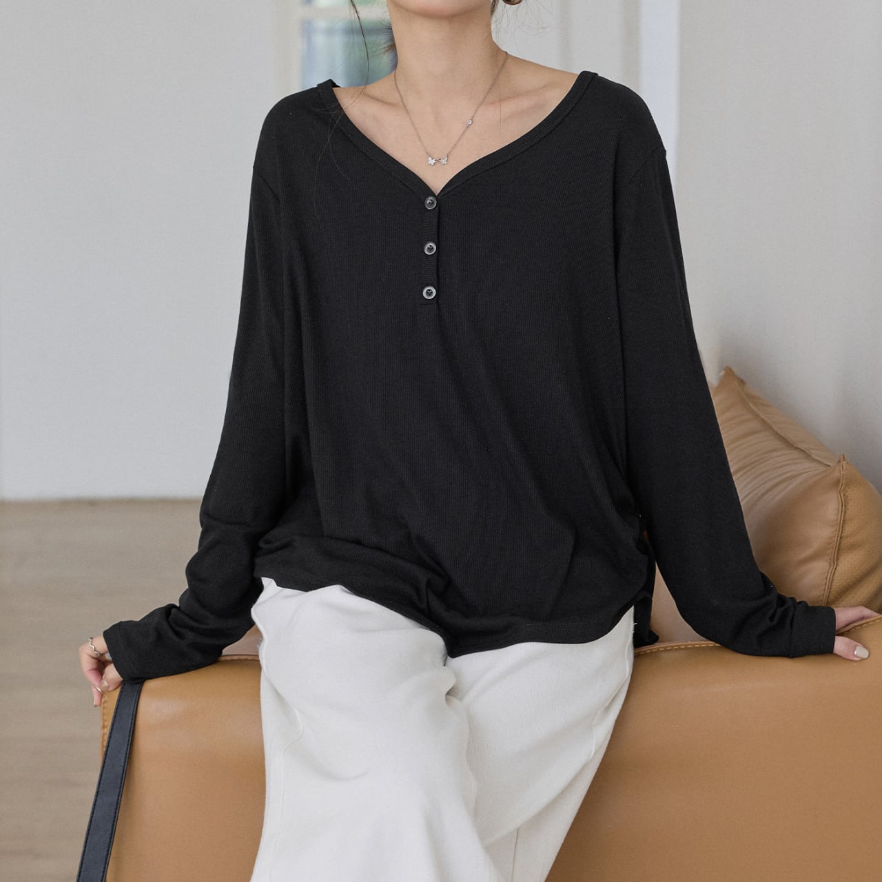 Vネックヘンリーボタンリラックスカットソー(3color) 3571