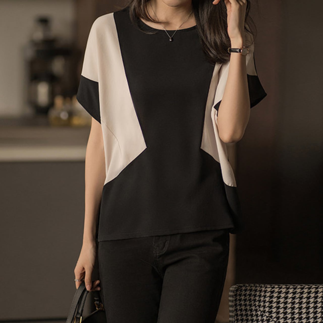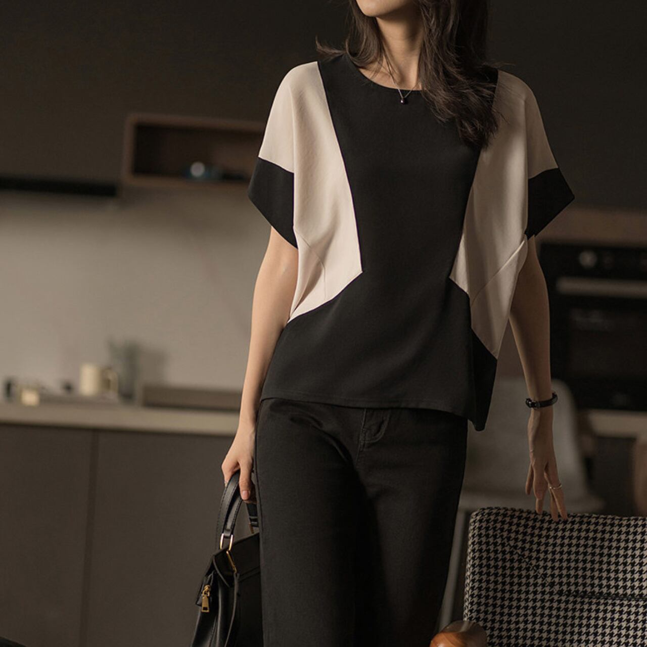 大胆な切り替えデザインが目を惹く、大人のための主役級カットソー。