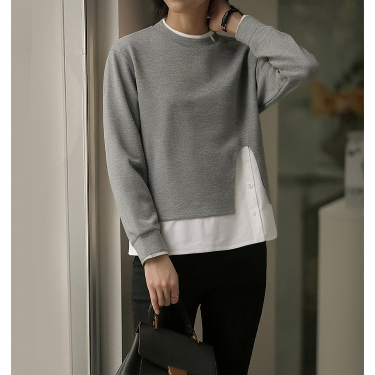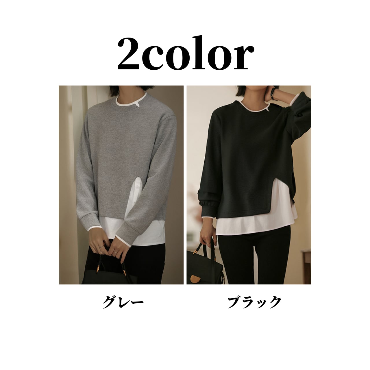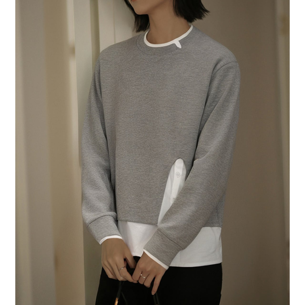 アシンメトリースリットレイヤードライクプルオーバー (2color) 3581