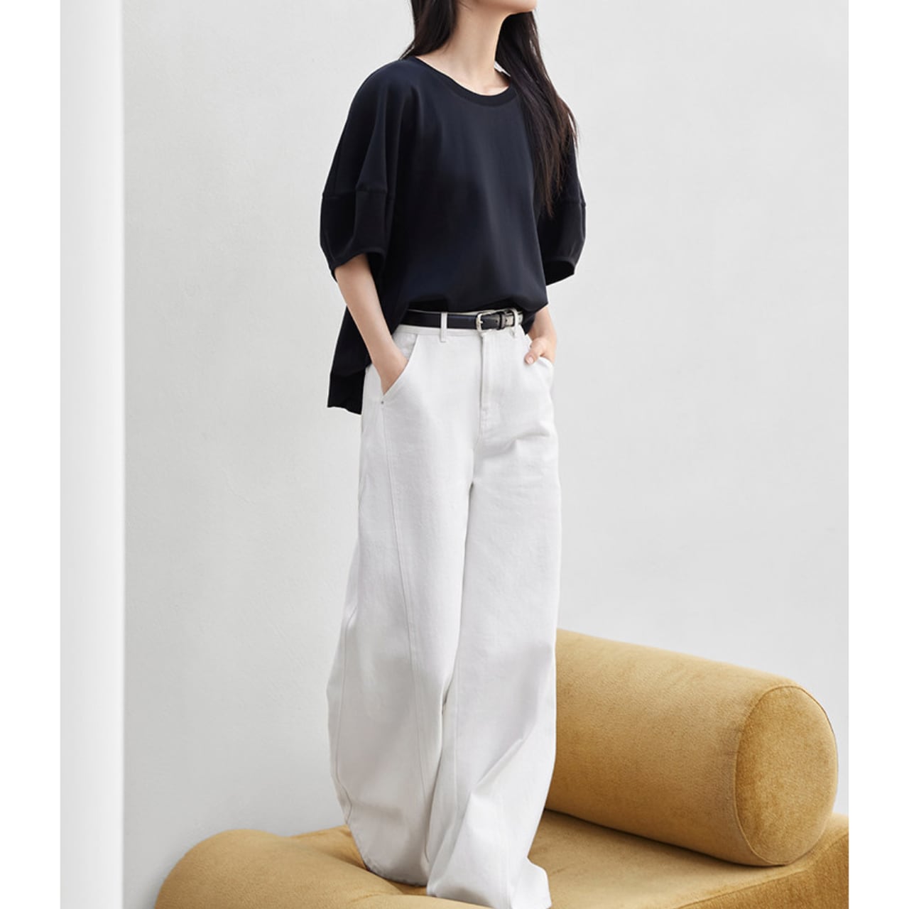 身幅にゆとりを持たせたリラクシーな着心地ながら、
