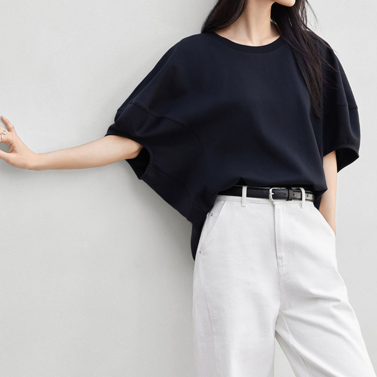 計算されたフォルムでルーズに見えすぎないのがポイント。