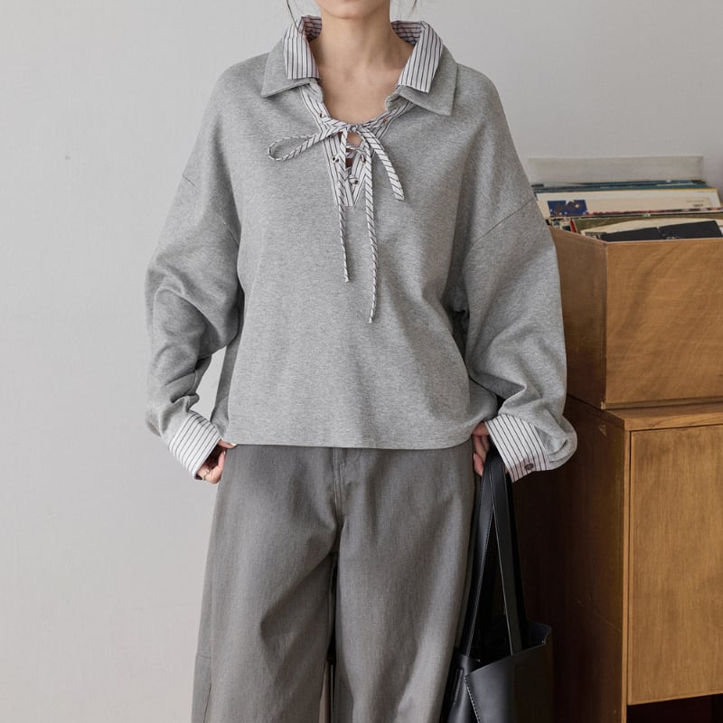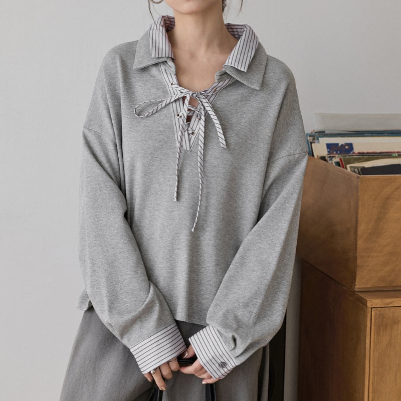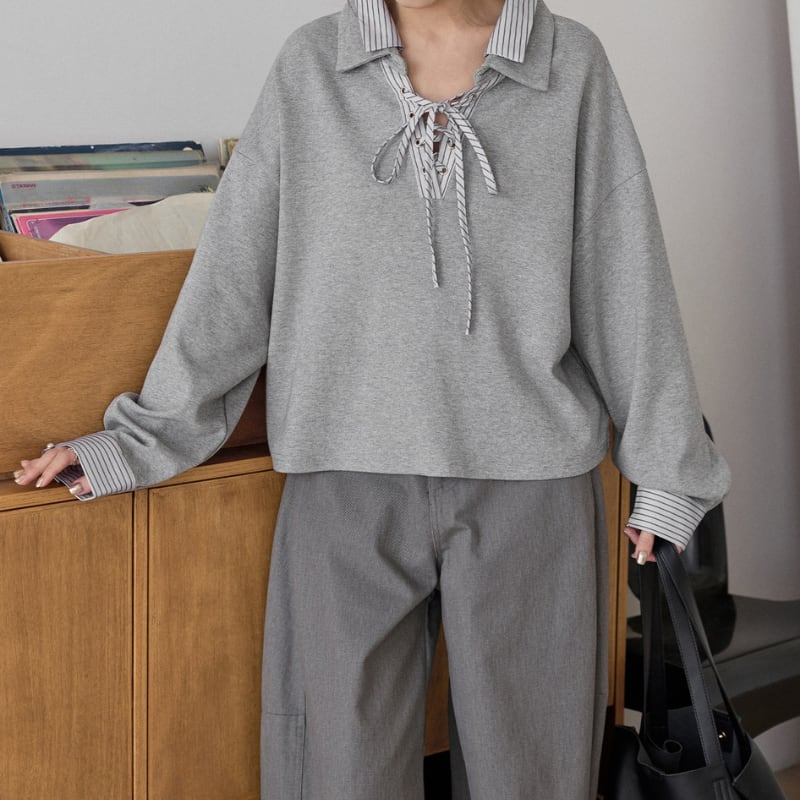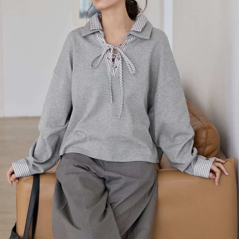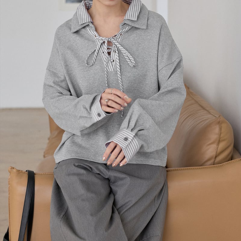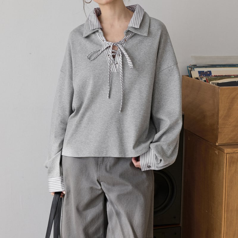 ストライプドッキングレースアッププルオーバー 3586