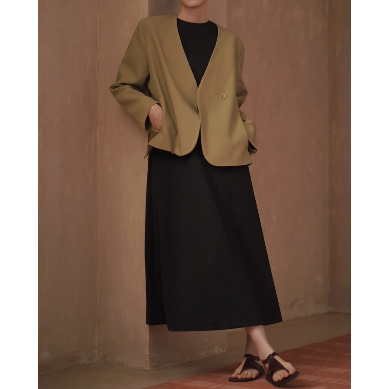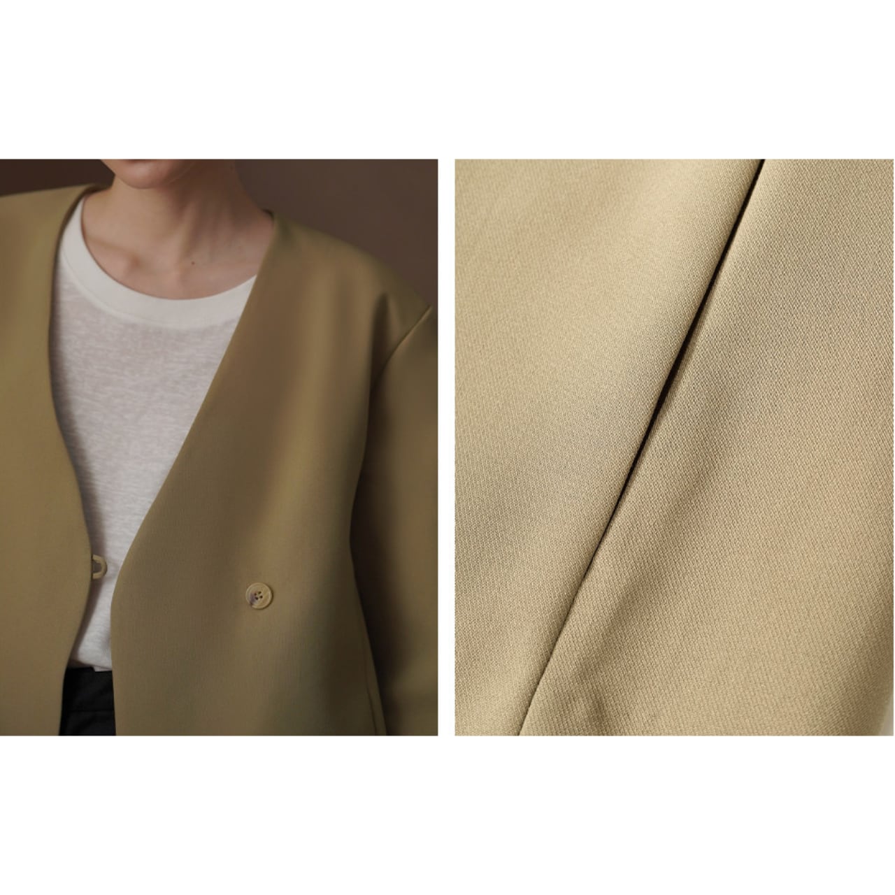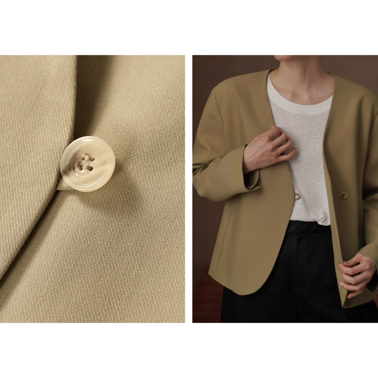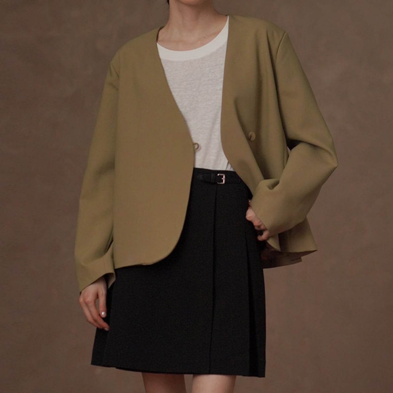 アシンメトリーボタンノーカラーVネックジャケット 3589