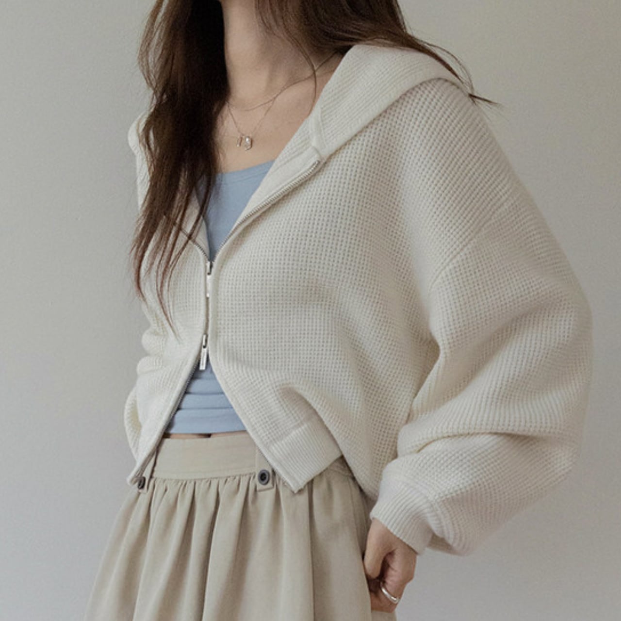 ボリュームスリーブショートジップフーディー (3color) 3595