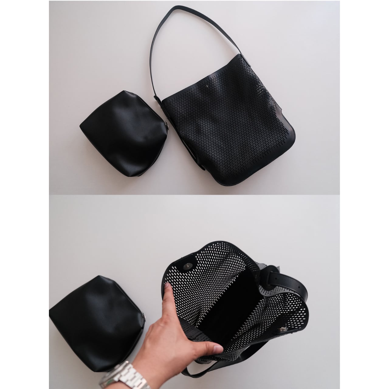 マイクロパンチングジオメトリックトート 3598