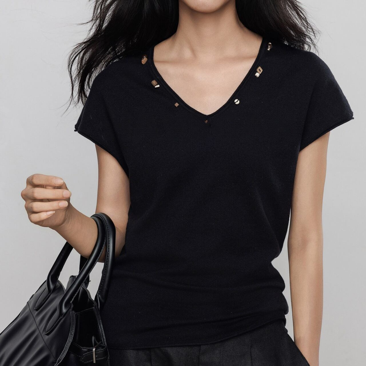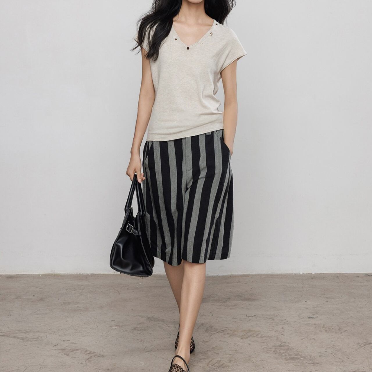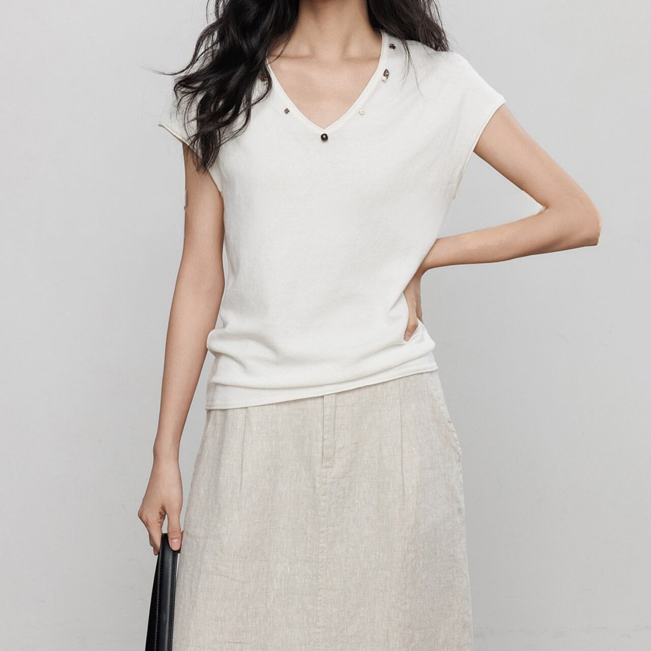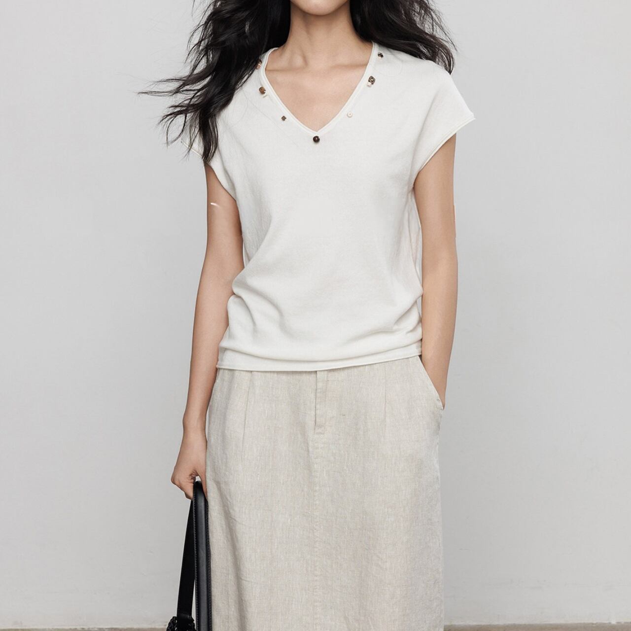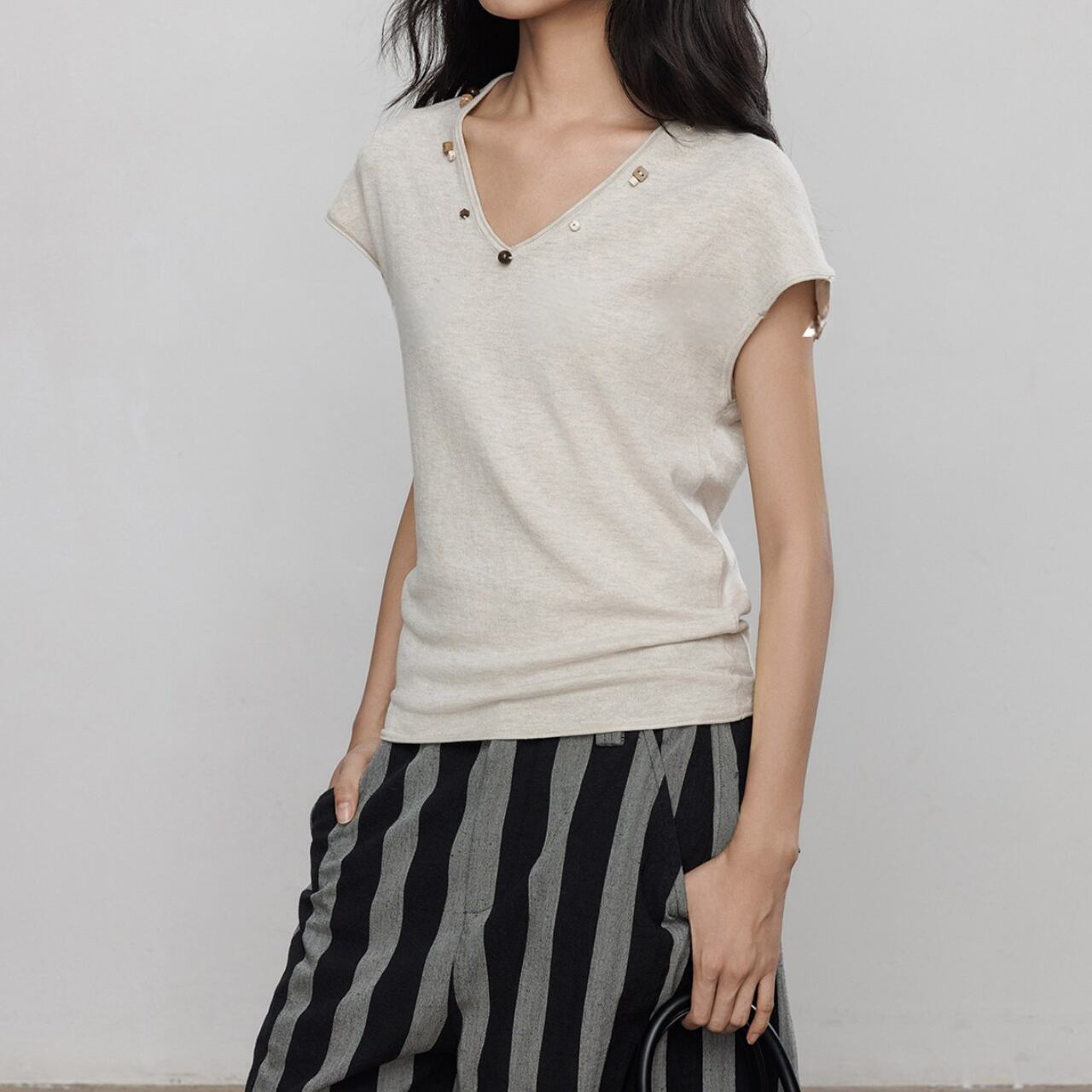 Vネックボタンアクセントプルオーバー (3color) 3605