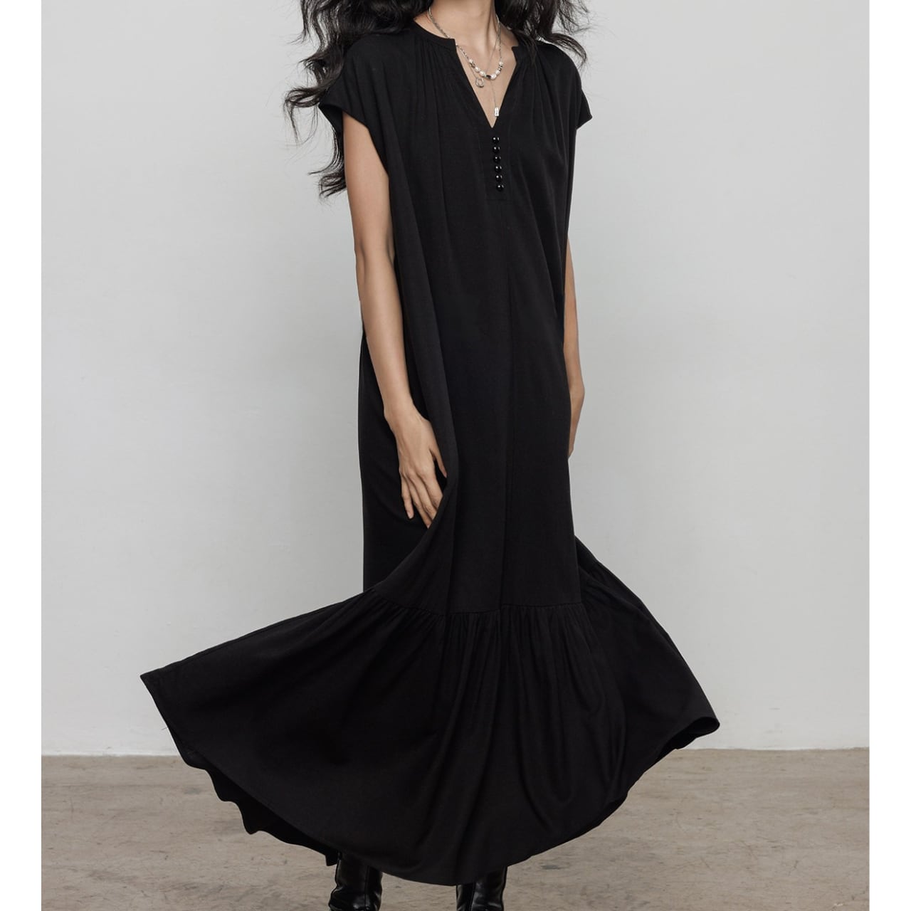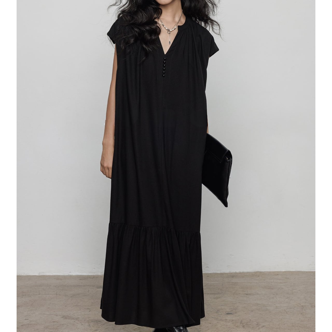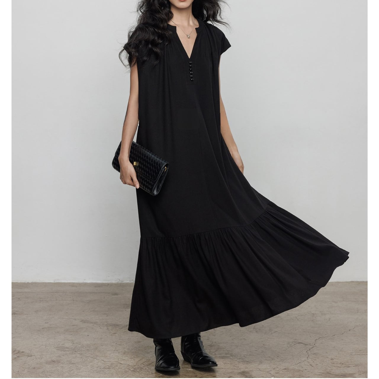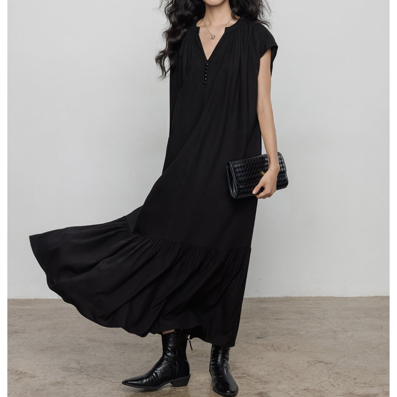 フロントボタンVネックティアードマキシワンピース(2color) 3606