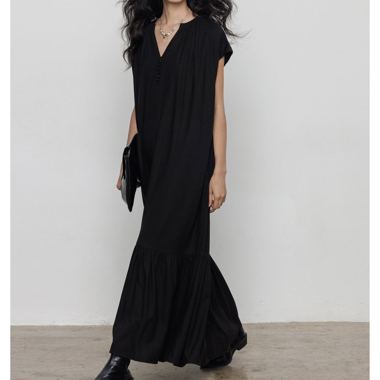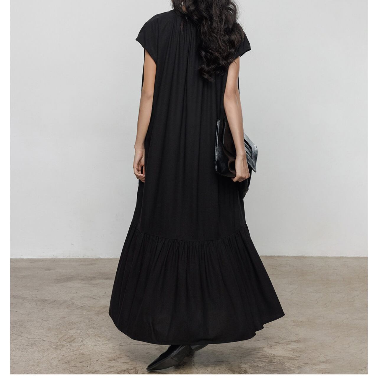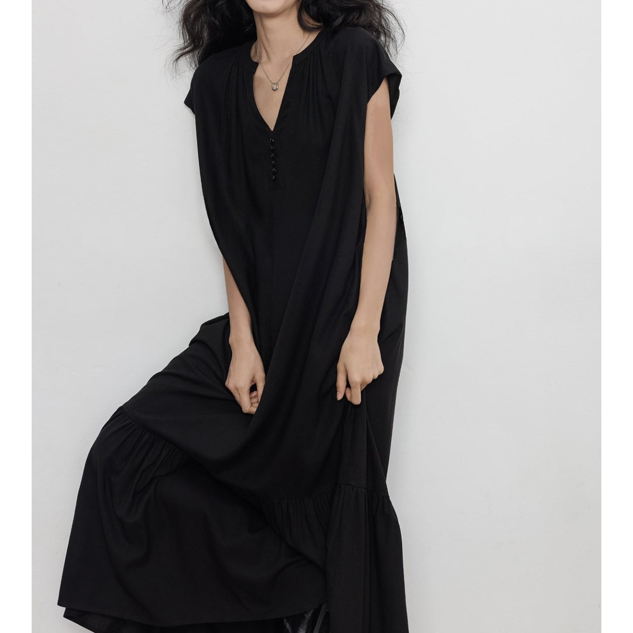 フロントボタンVネックティアードマキシワンピース(2color) 3606