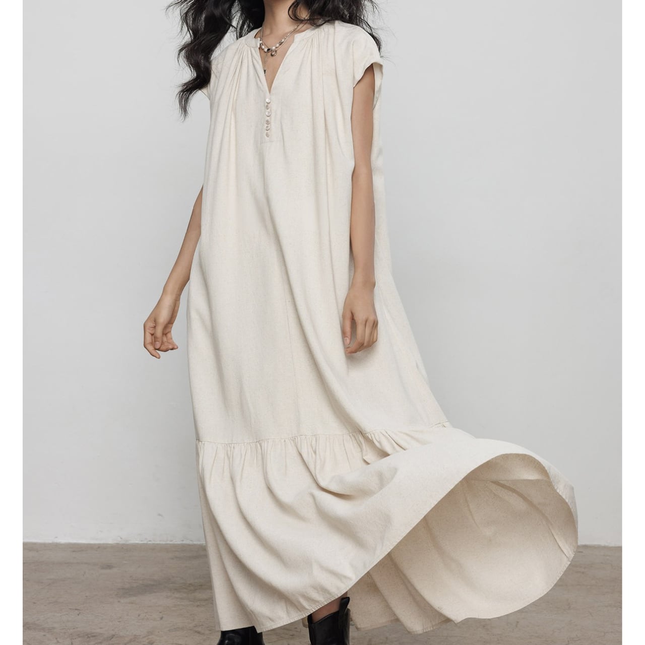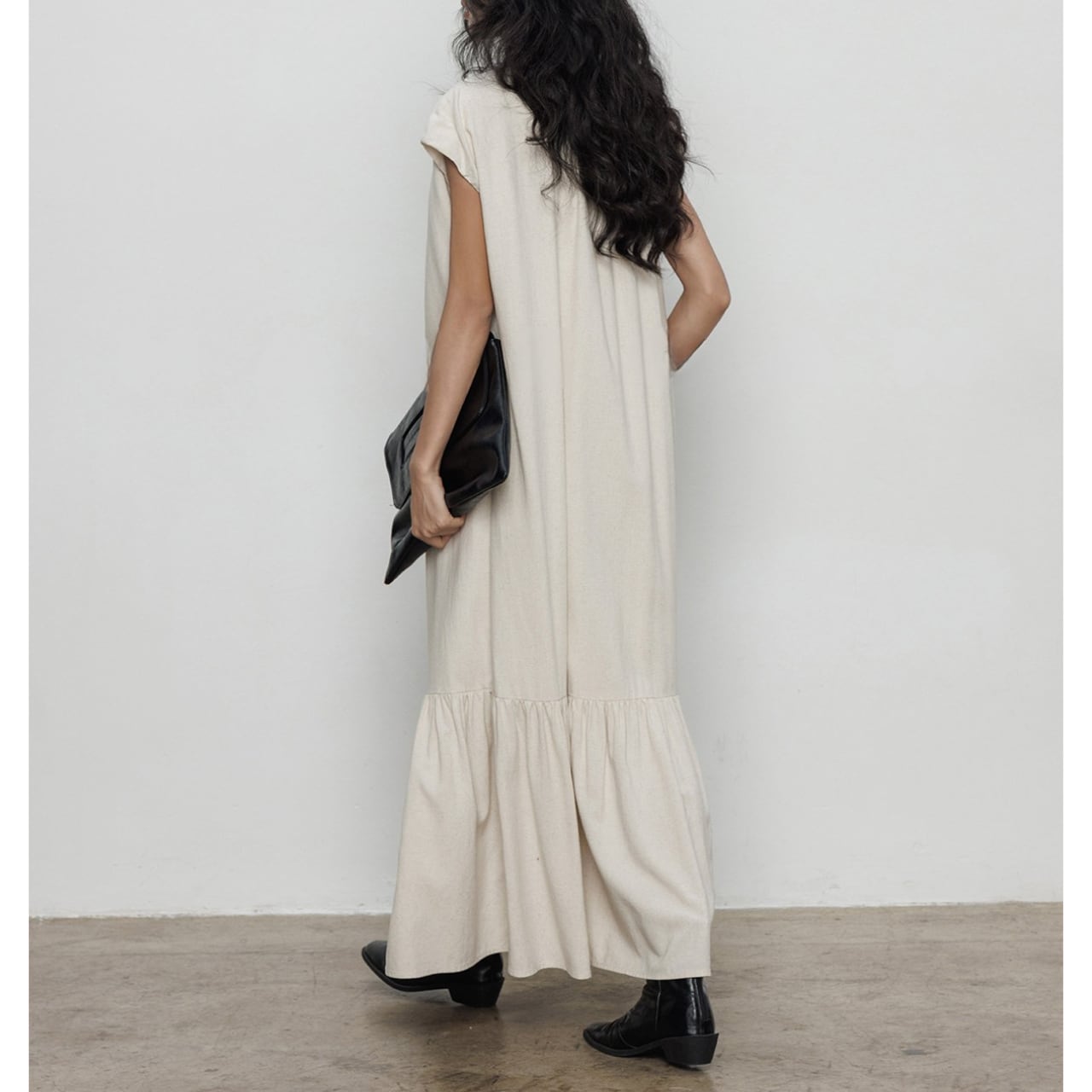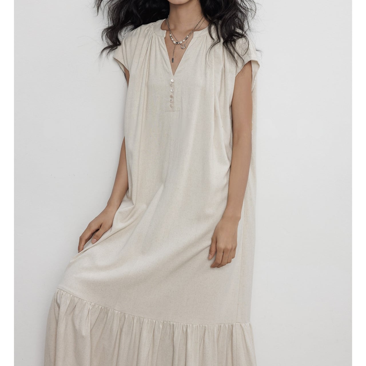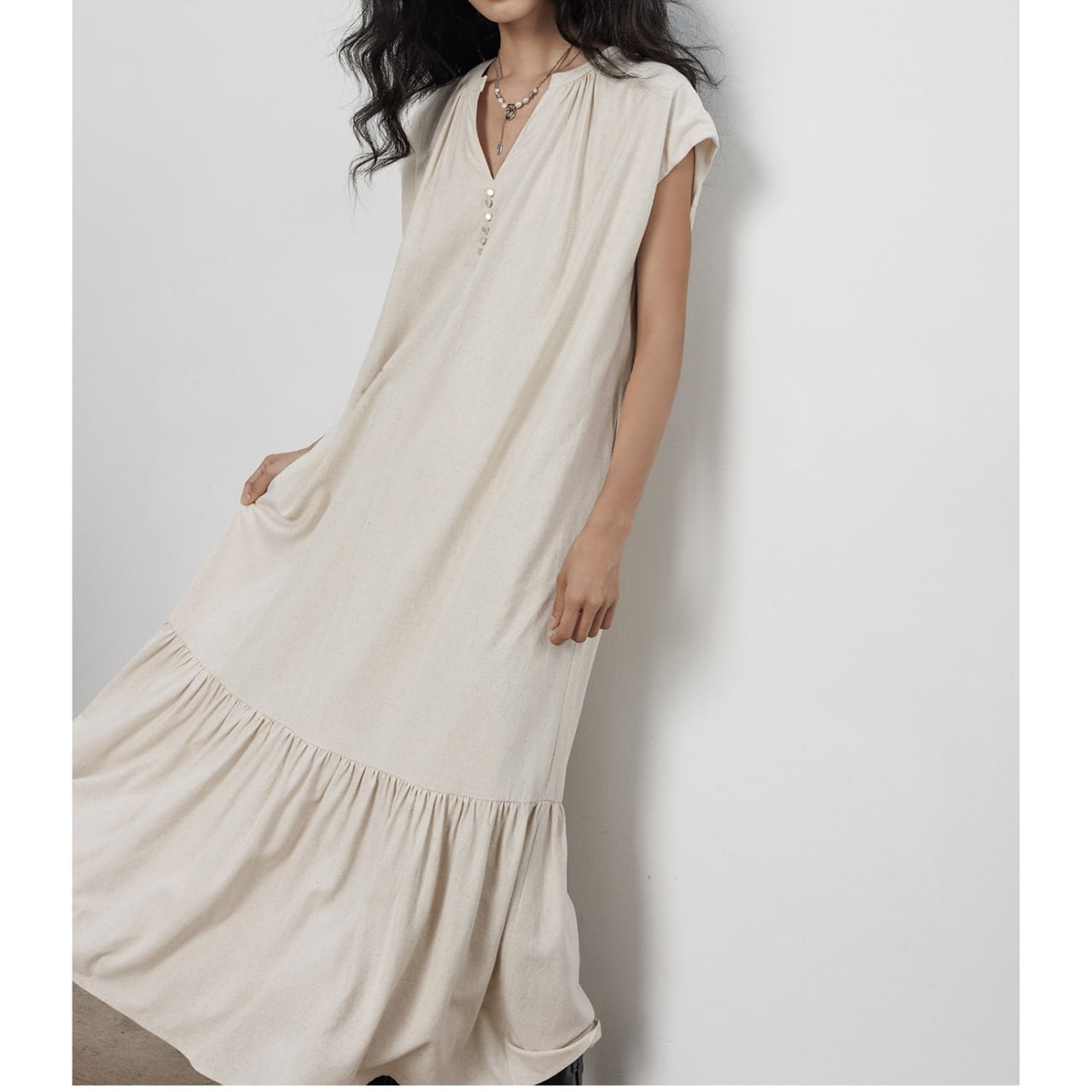フロントボタンVネックティアードマキシワンピース(2color) 3606