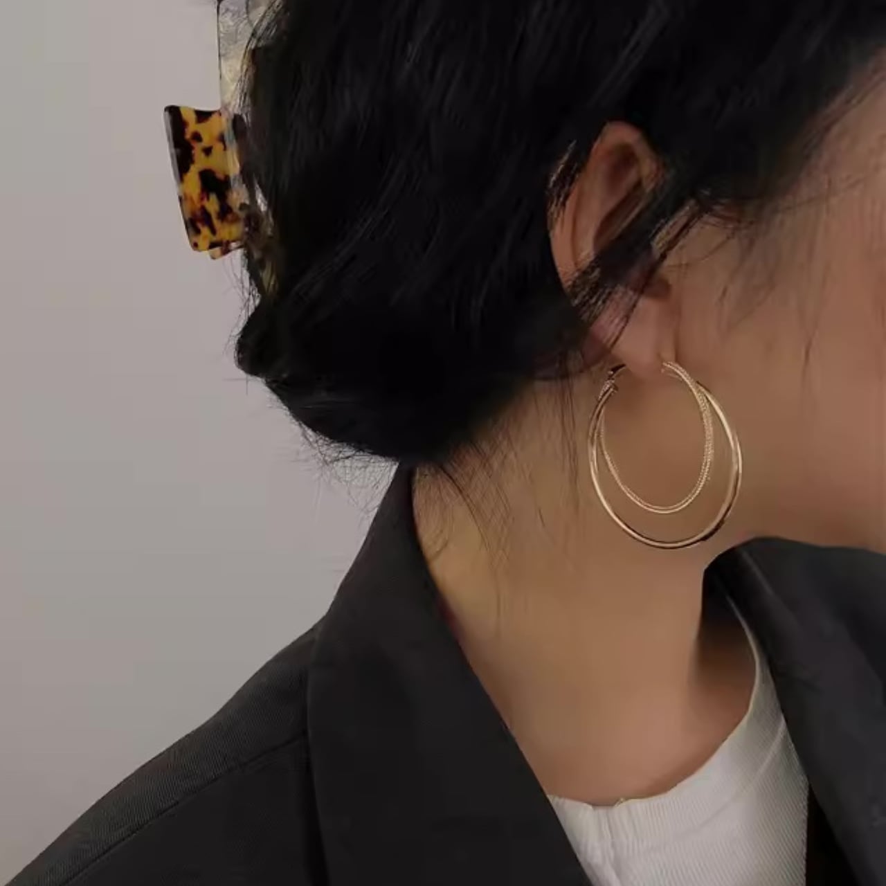 シンプルで大人らしいサークル型のフープピアス。