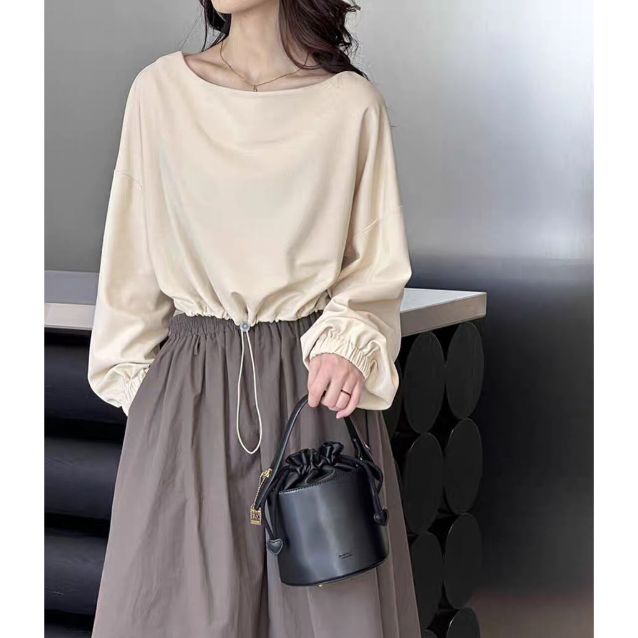 洗練されたデザインのボートネックドローストリング